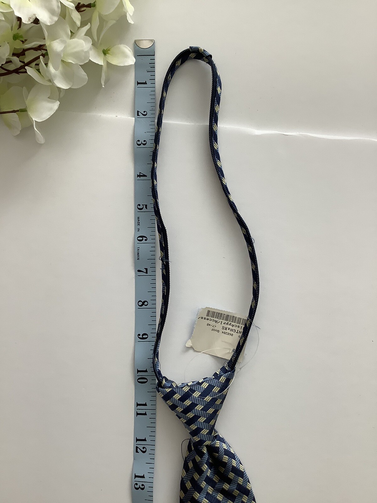 как выглядит Talbots Kids YOUTH 100 Silk Blue and Tan Pre-tied Zipper Neck Tie EUC фото