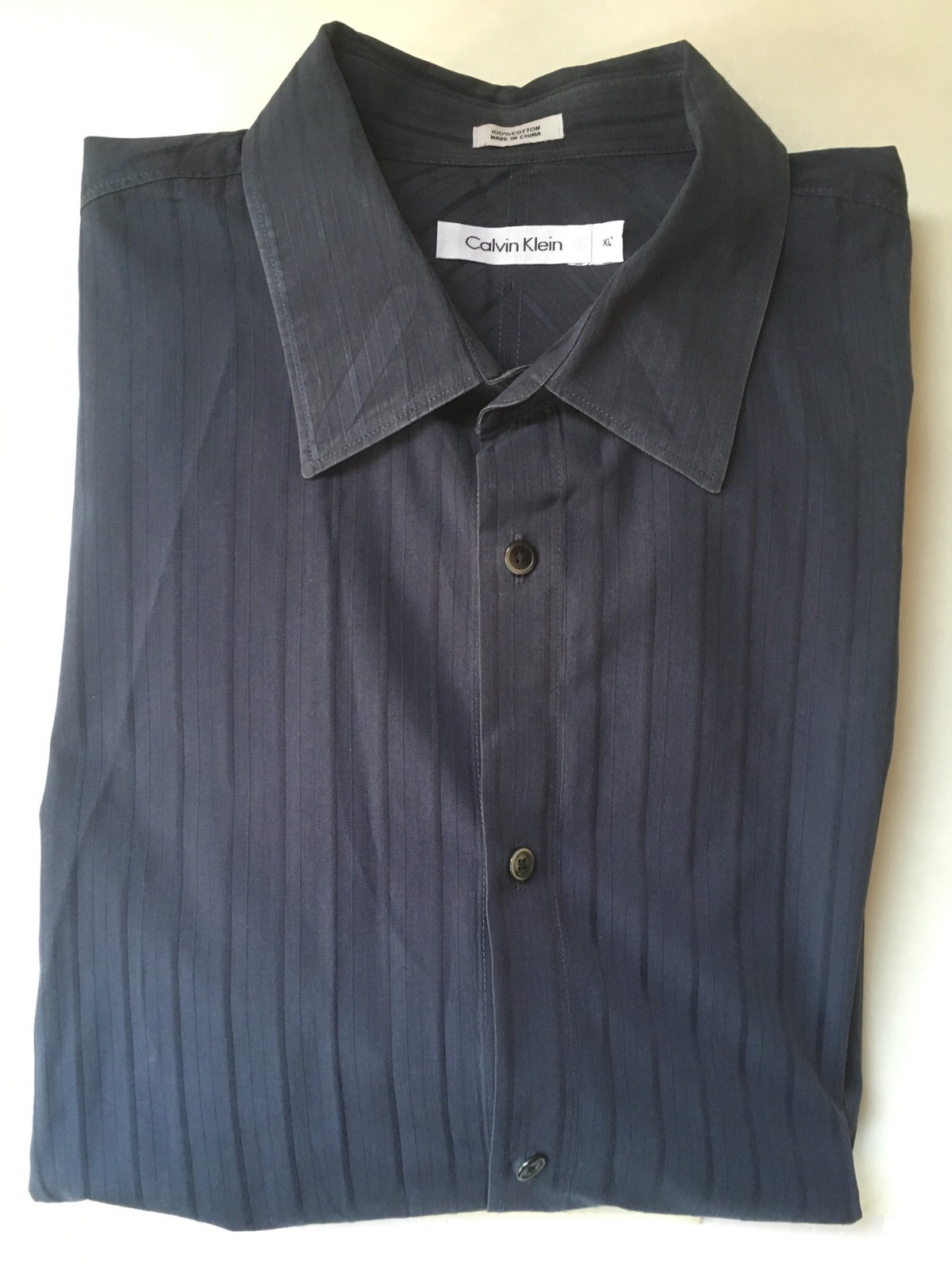 Men's Navy Blue Striped CALVIN KLEIN LongSleeve ButtonFront Shirt 100 Cotton XL