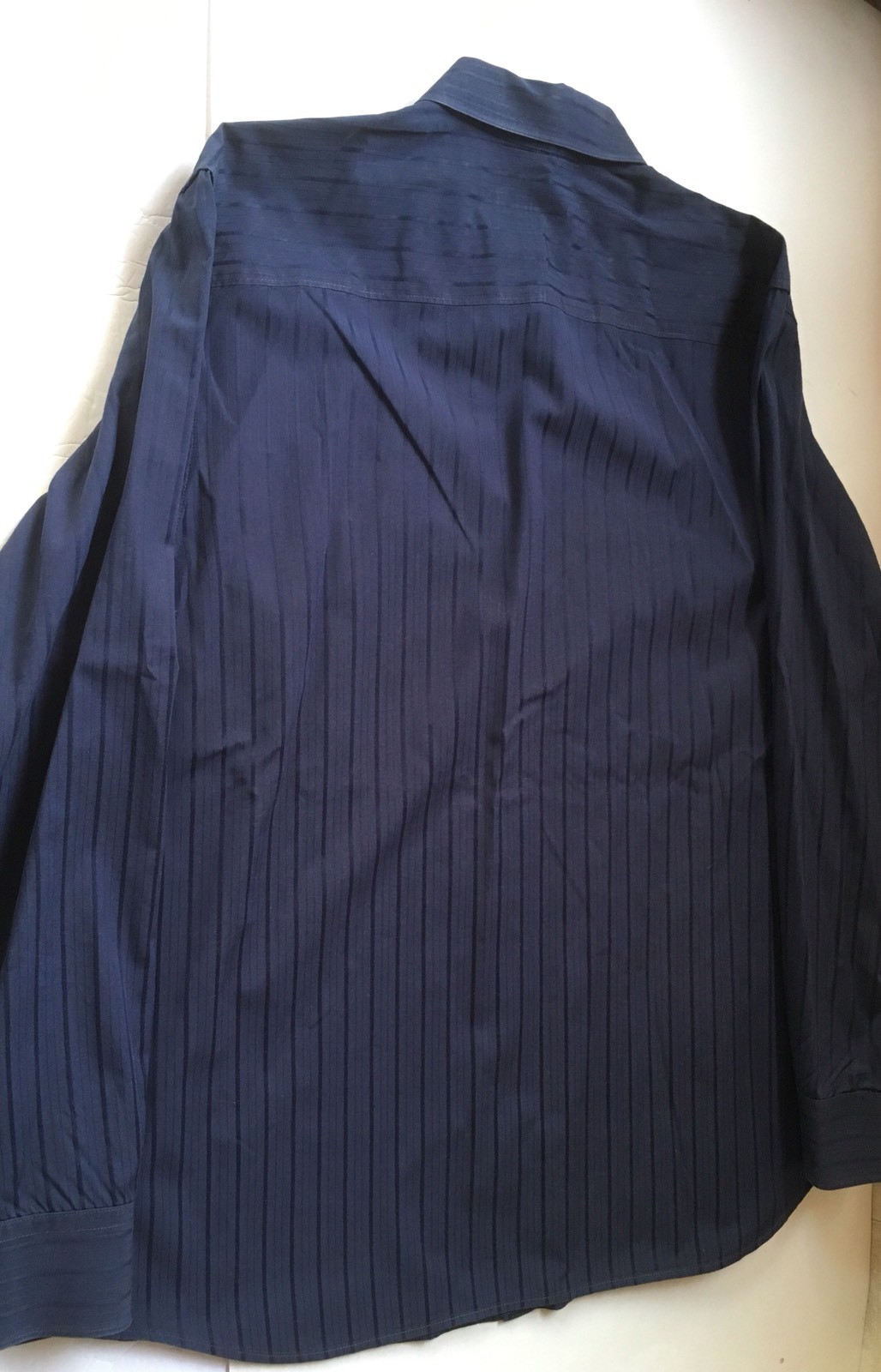 как выглядит Mens Navy Blue Striped CALVIN KLEIN LongSleeve ButtonFront Shirt 100 Cotton XL фото