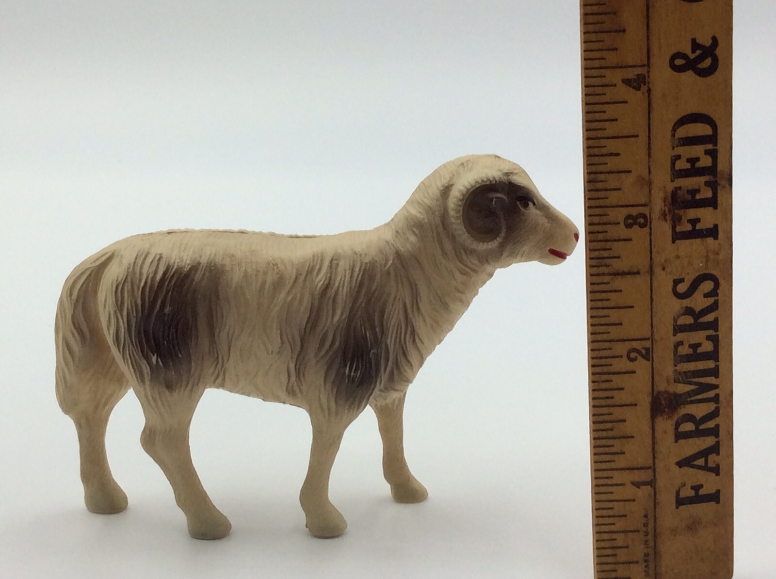 как выглядит Vintage Celluloid Ram Sheep Rattle Nativity фото