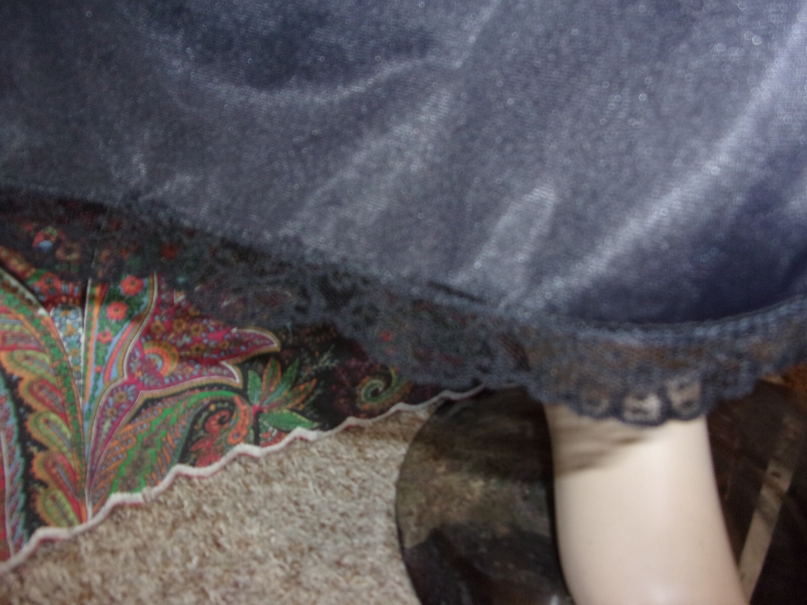 как выглядит Vintage Black Lacy Silky Nylon Formal Length Slit Half Slip Lingerie M-L фото