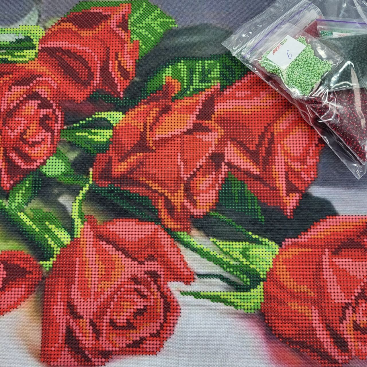 как выглядит Bead Embroidery Kit Roses DIY Craft Kit Stamped Bead Needlepoint Beaded d3413 фото