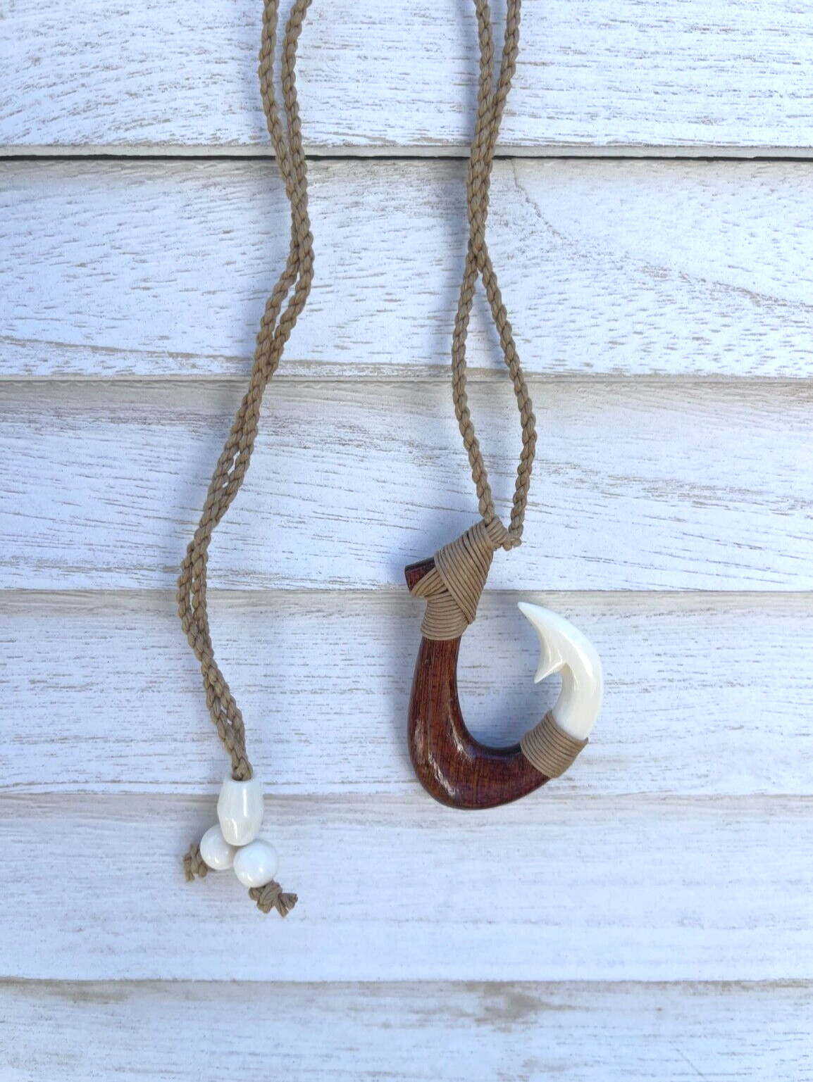как выглядит Genuine Koa Wood Hawaiian Design Jewelry Fish Hook Pendant Choker/Necklace 45008 фото