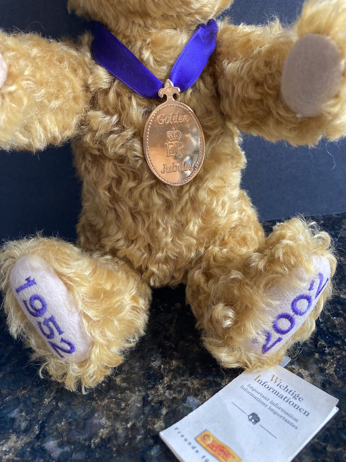 как выглядит STEIFF golden jubilee ER II Teddy bear 1952-2002 30cm. 660740 Genuine Mohair фото
