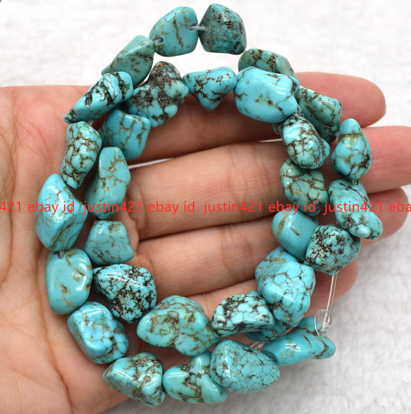 как выглядит 100 Natural 6mm-20mm Blue Turquoise Irregular Gemstone Loose Beads 15" AAA фото
