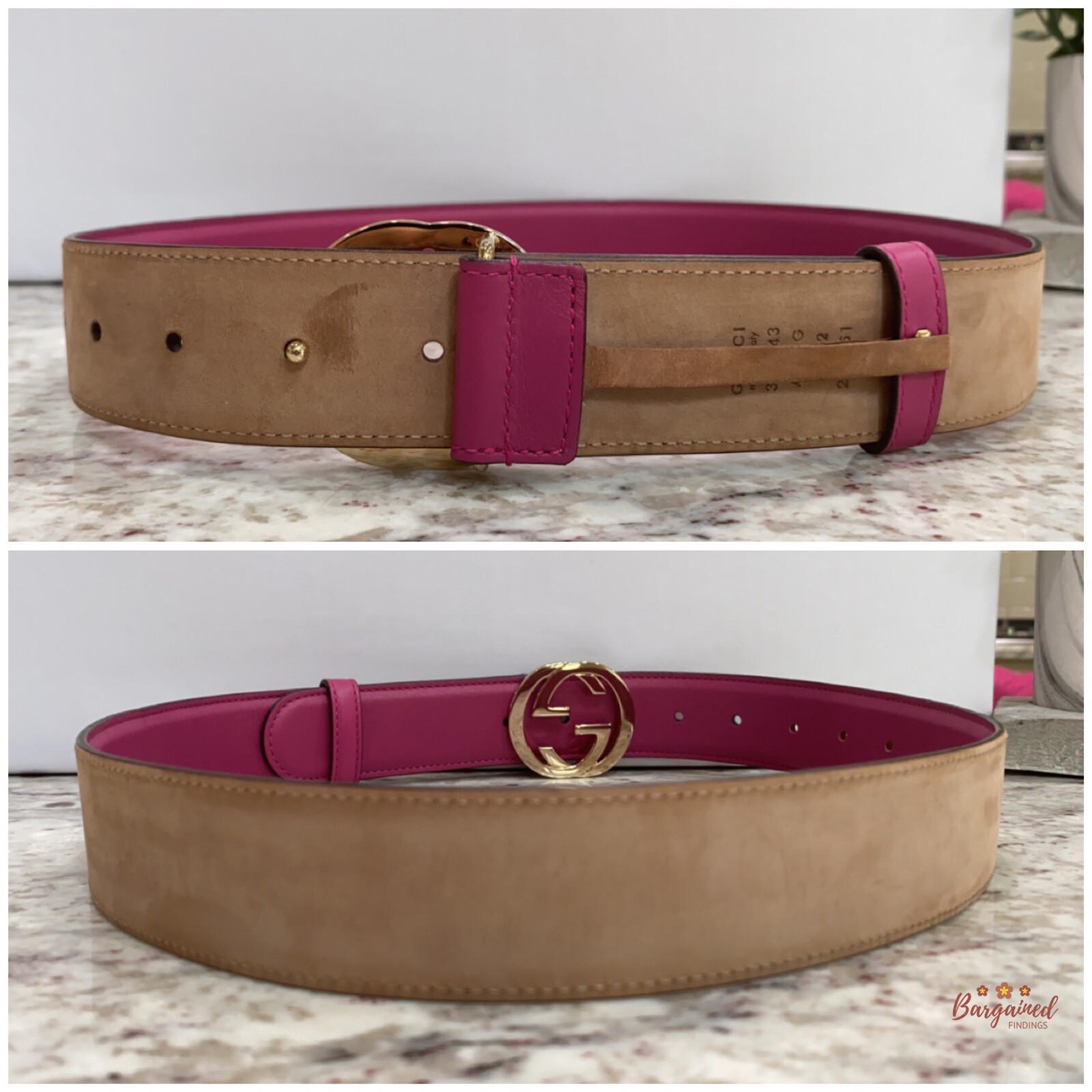 как выглядит Authentic Gucci Hot Pink Calfskin Leather Gold Interlocking G Buckle Belt 80/32 фото