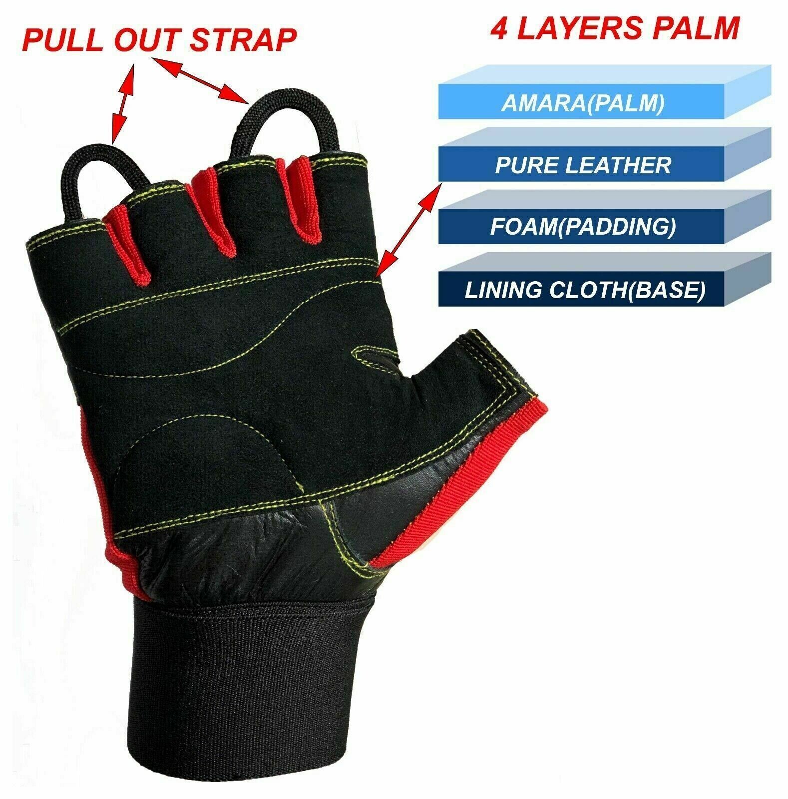 Gym Weight Lifting Gloves Leather Training Wrist Straps Body Building Workouts