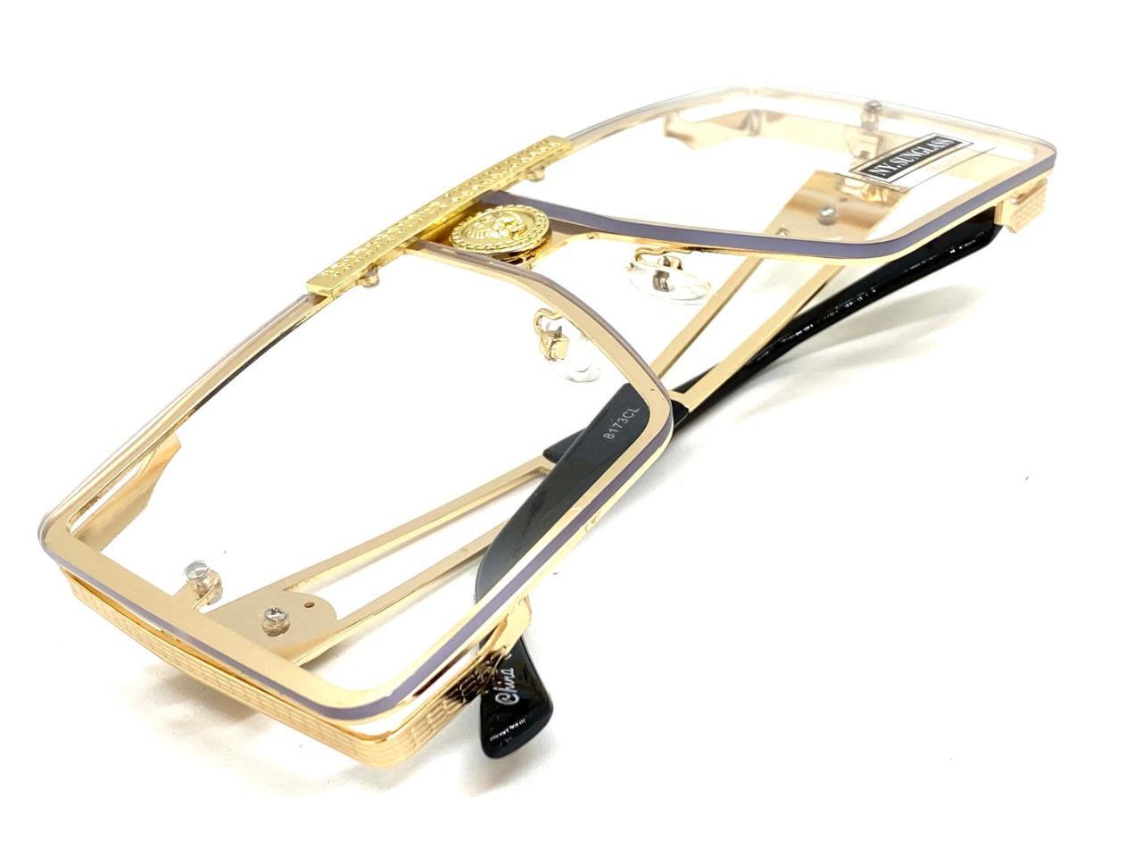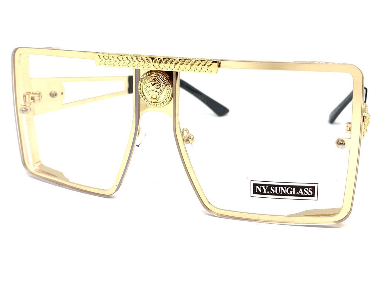 Oversized Classic Retro Shield Hip Hop Clear Lens EYE GLASSES Large Gold Frame