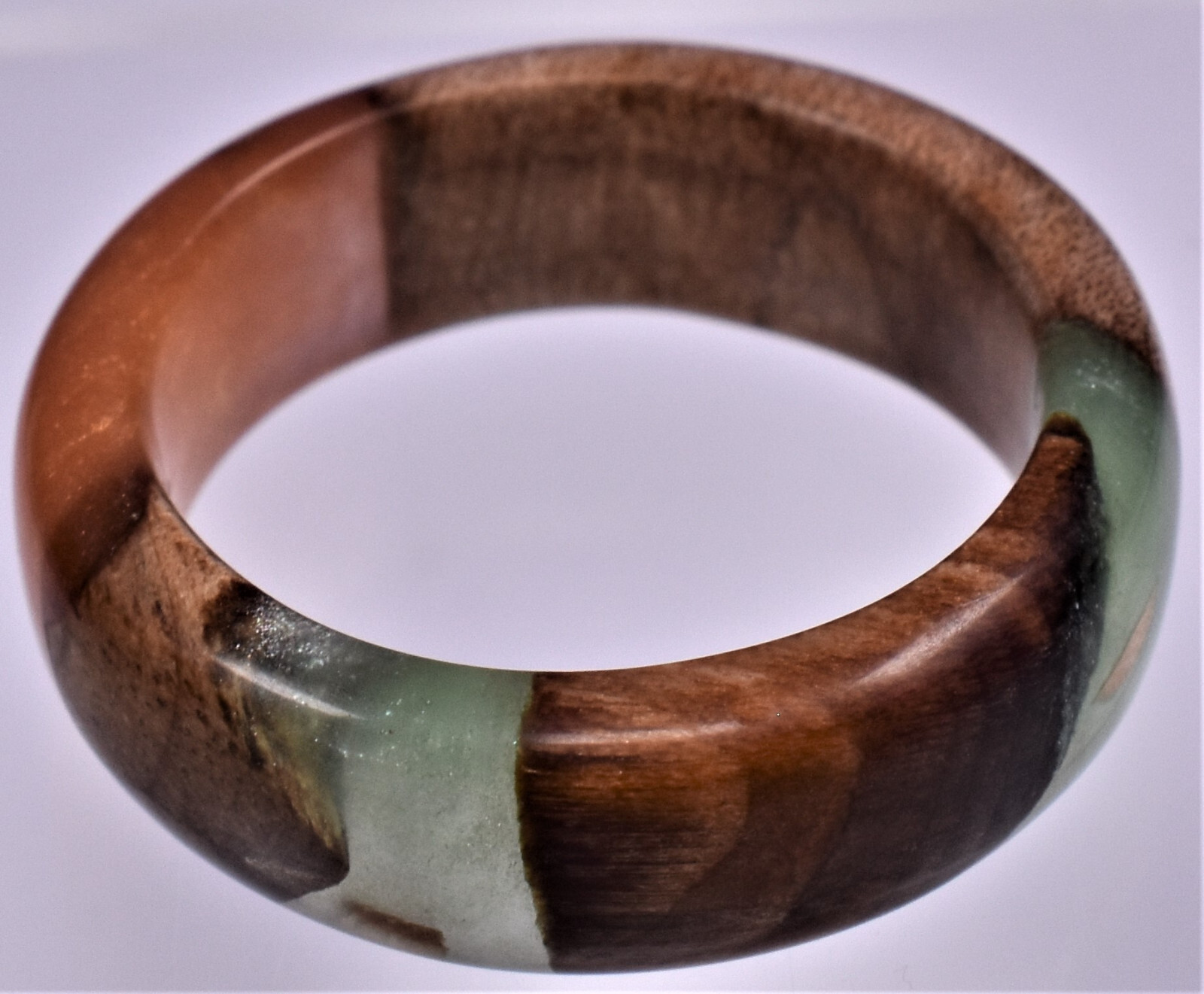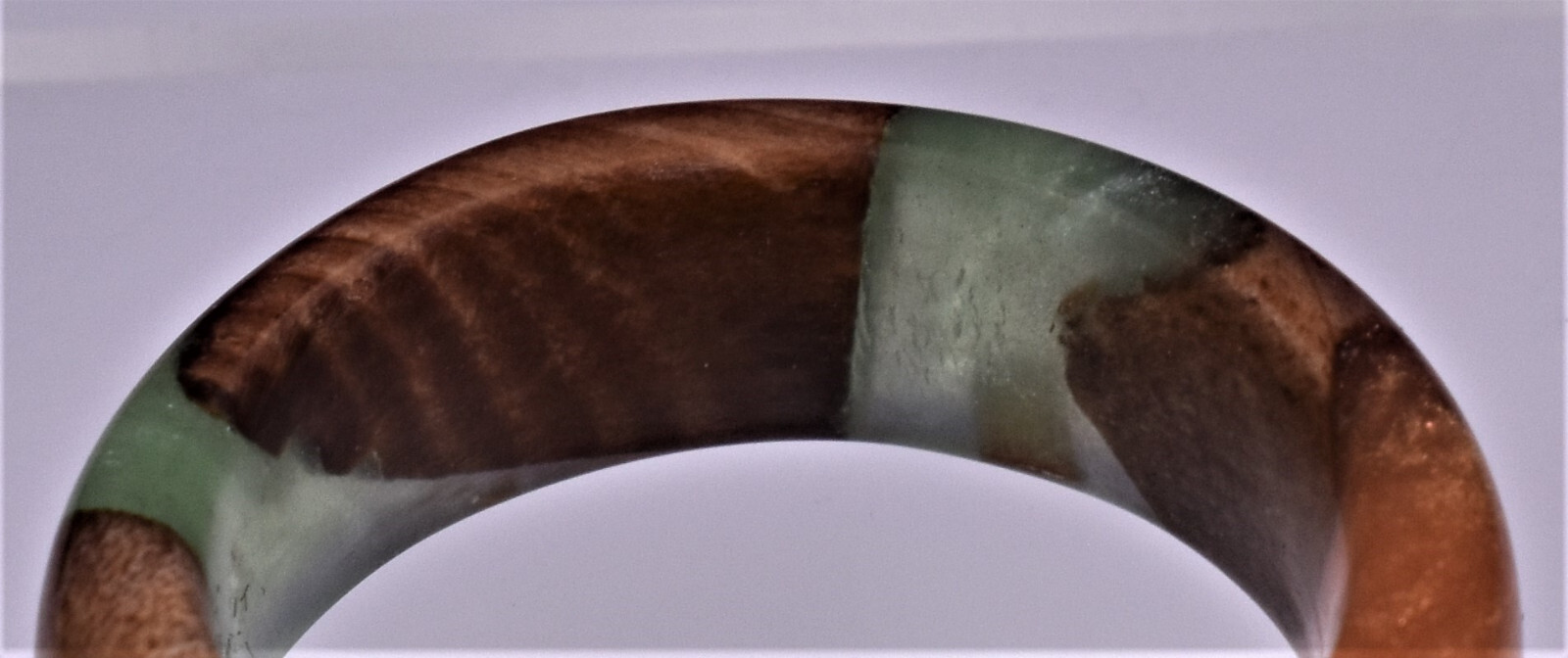 Handcrafted Ring Made in Oregon by Dee Myrtle Wood Green Epoxy with UV Resin