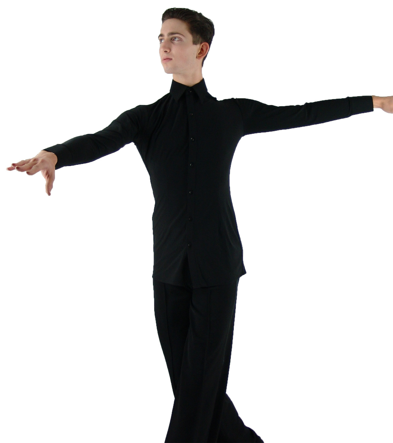 MS962 Mens Ballroom Smooth Stretchy Dance Shirt in White or Black 14-18