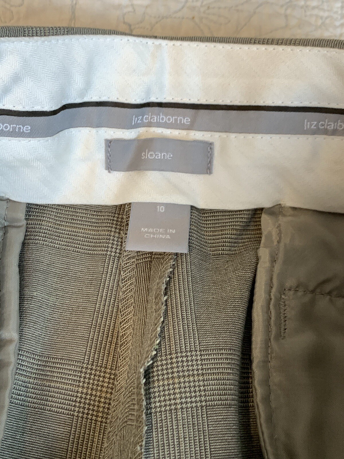 Liz Claiborne Sloane Womens Tan Brown Plaid Pants Lined Size 10