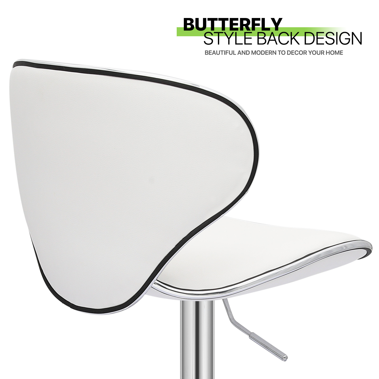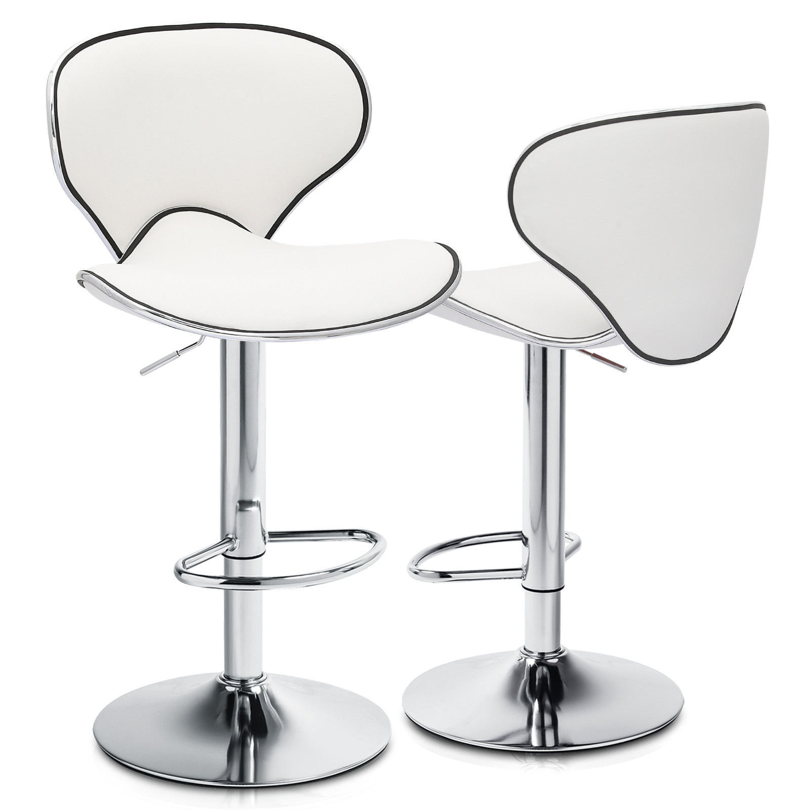 Set of 2 Adjustable Bar Stools White PU Leather Seat Counter Height Dining Chair