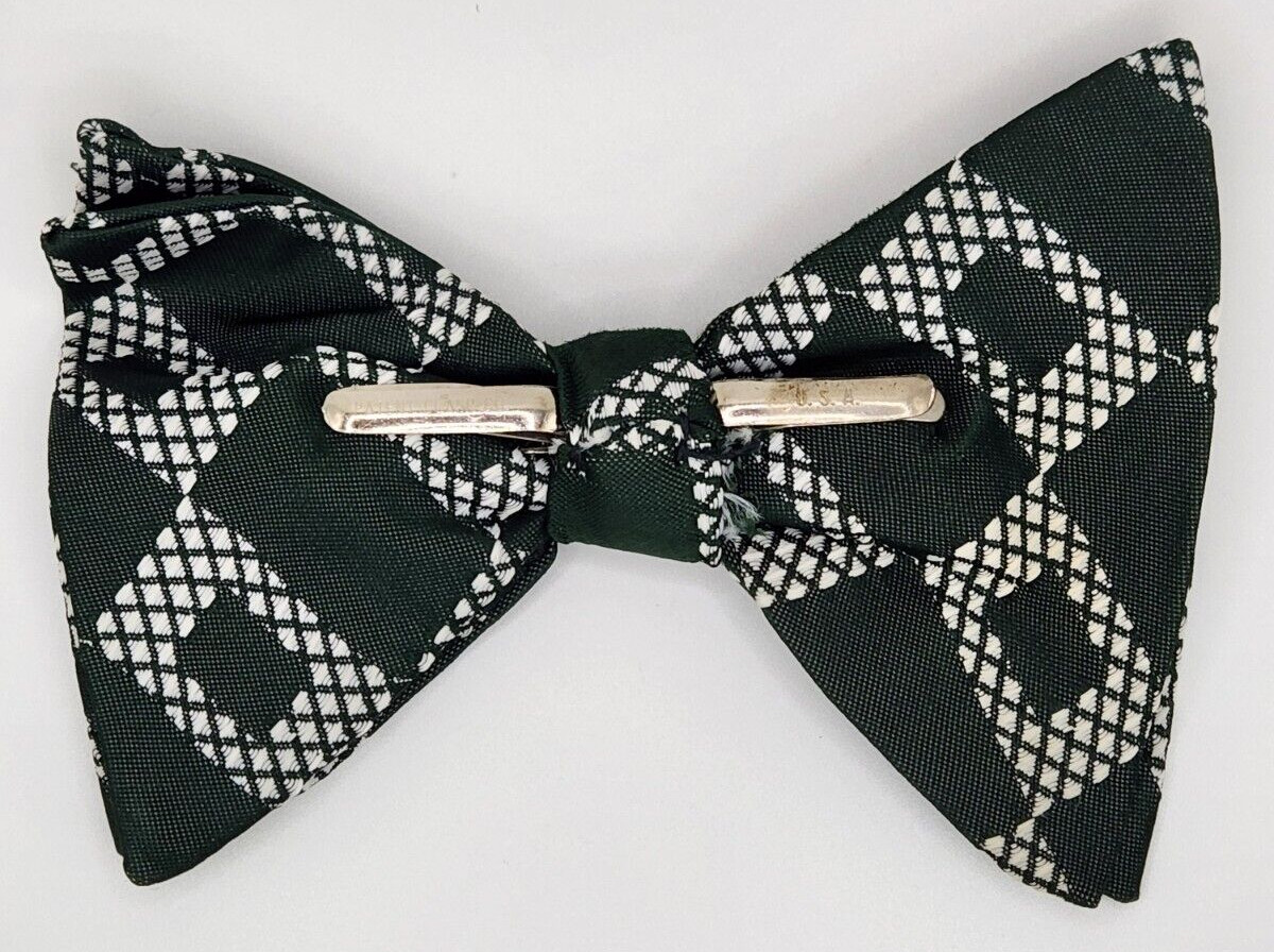 как выглядит Vintage Jumbo Butterfly Bowtie Clip on Dark Hunter Green White Diamond Accent фото