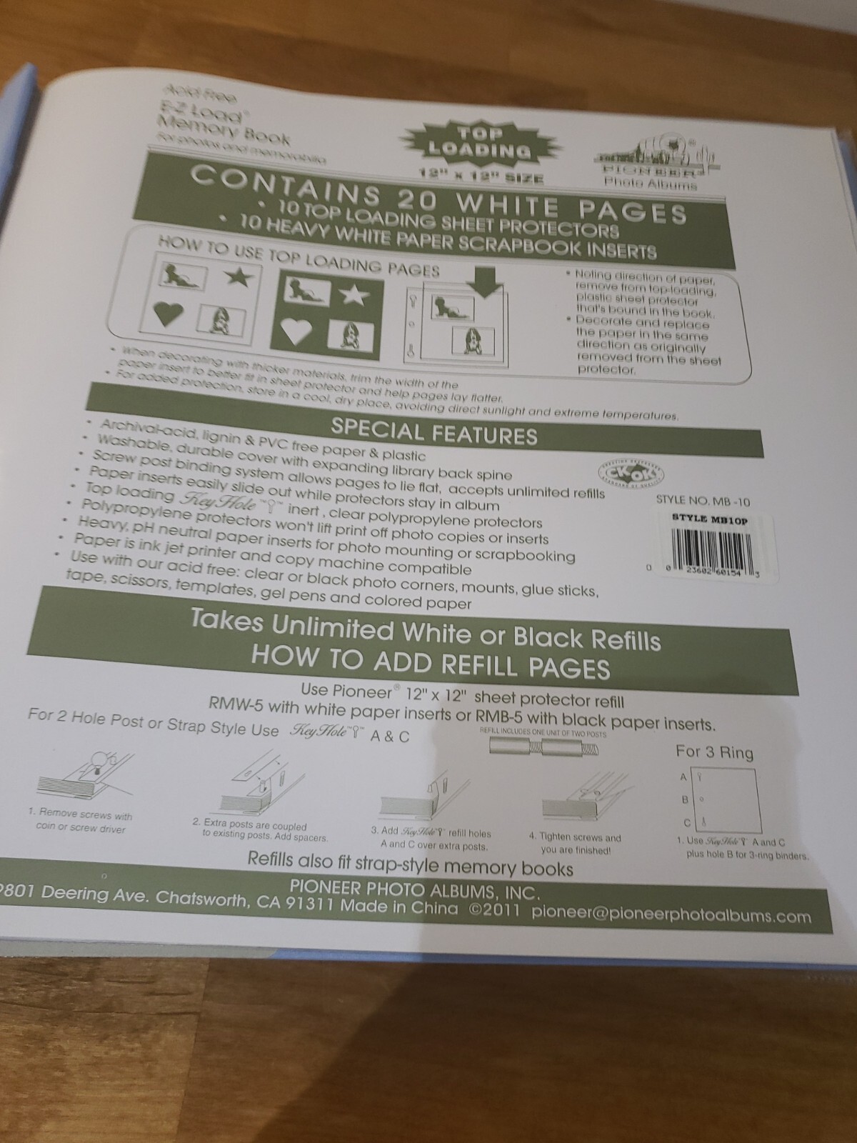 как выглядит Pioneer 12"x12" E-Z Load Memory Book Light blue Photo Scrapbook Top Loading фото