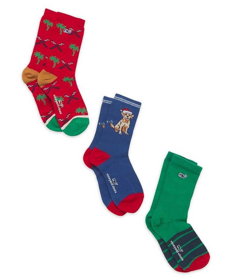 New boys 3 pack Vineyard Vines Vacation Feliz Navidog Christmas socks