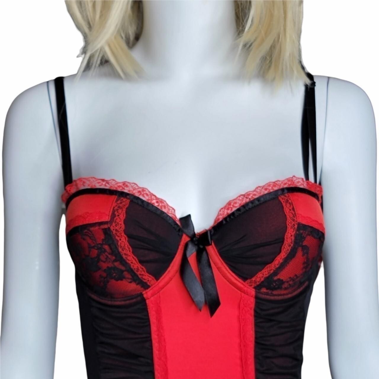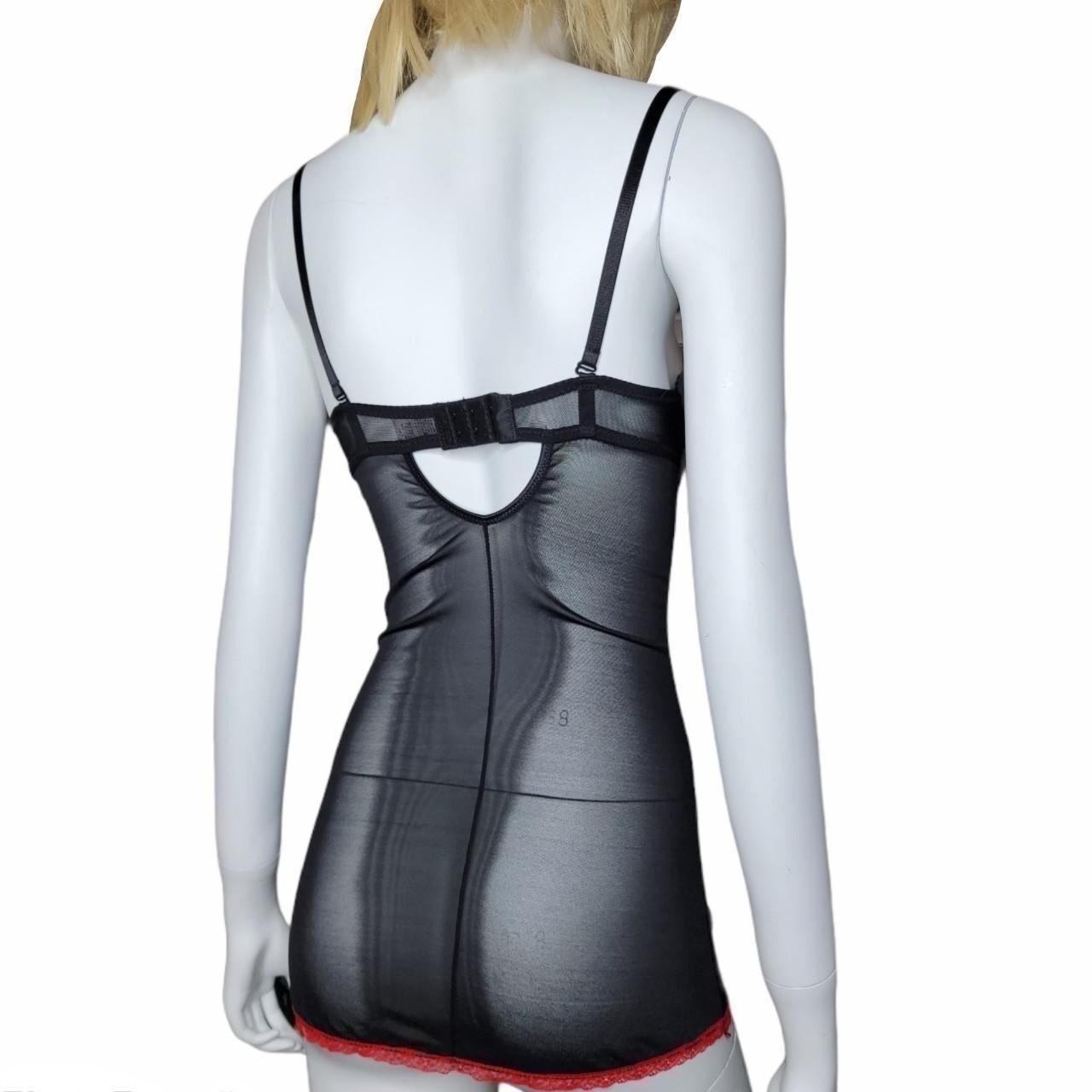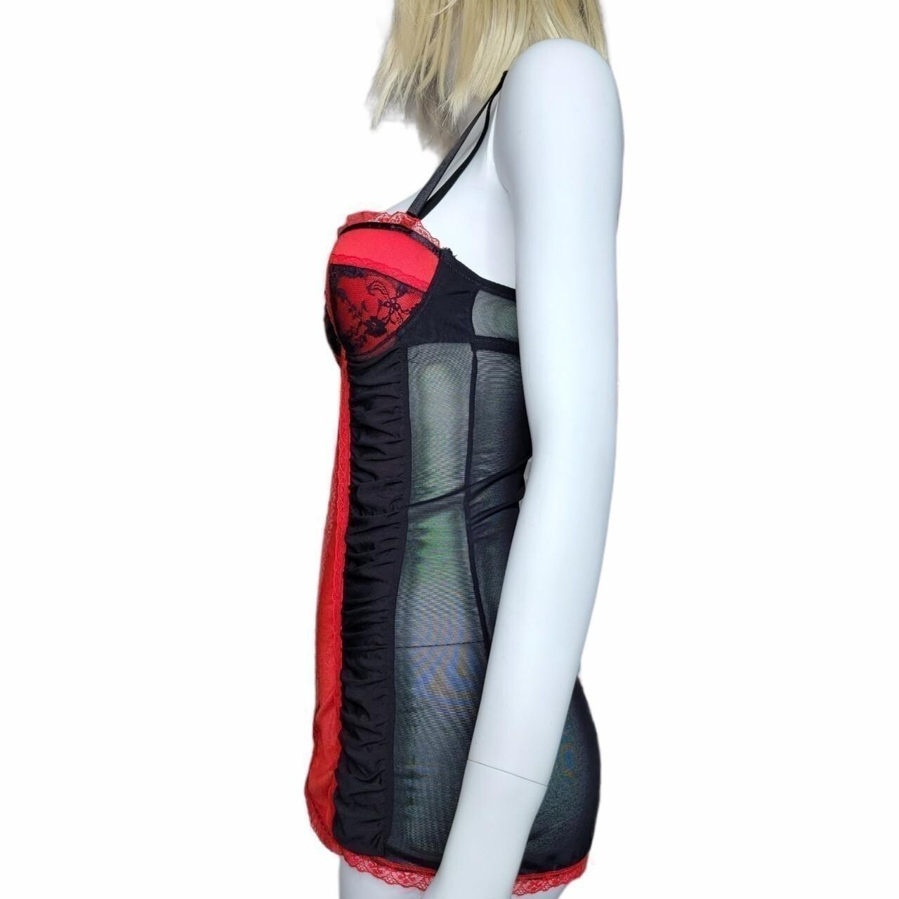как выглядит Rampage Intimates Lingerie Small Red Black Babydoll Chemise Nighty Slip Dress фото