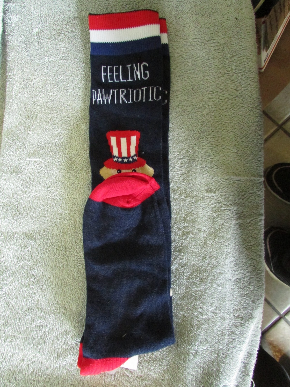 как выглядит 1 Pr Unisex "Feeling Pawtriotic" Patriotic Dog Knee-High Socks- Size 4-10 S 4 фото