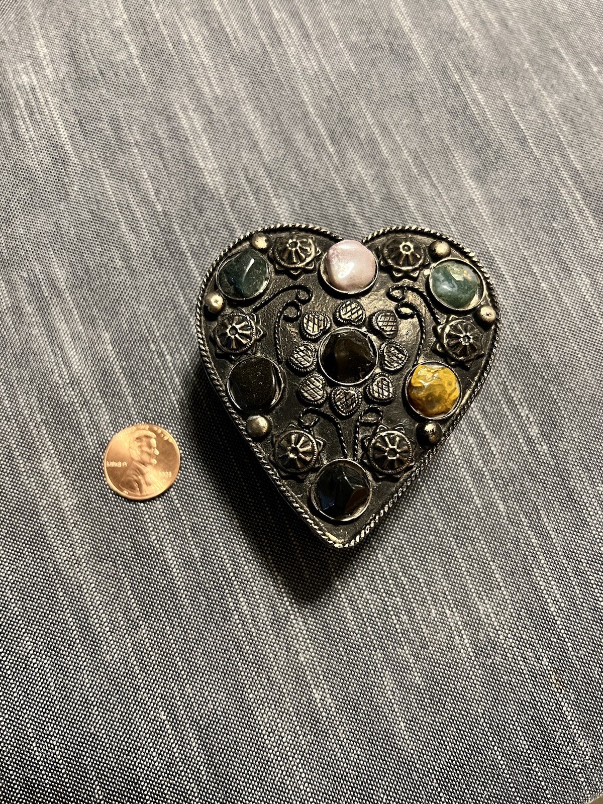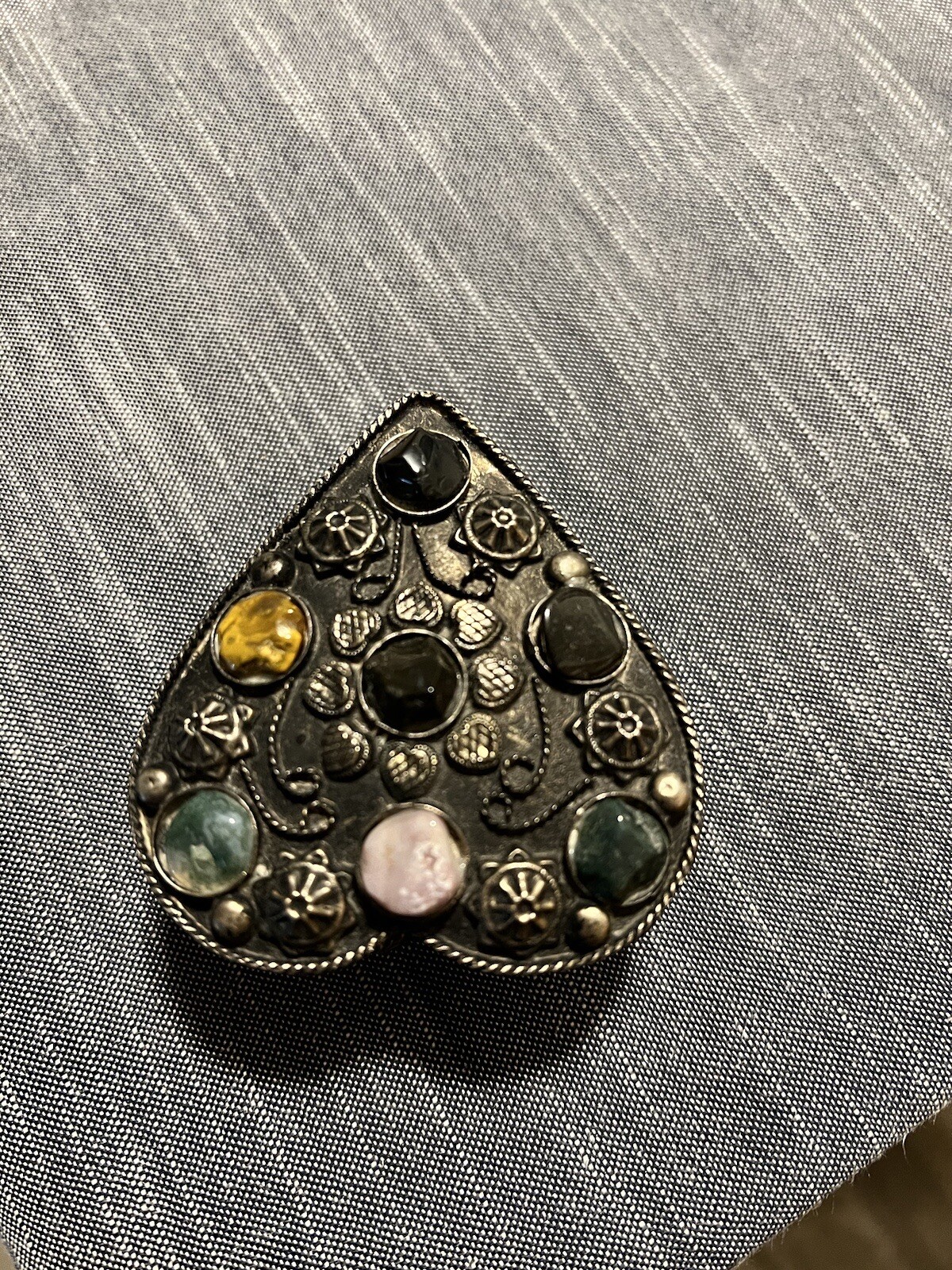 как выглядит vintage silver plated Indian jewelry box with natural stones фото