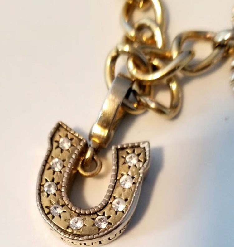как выглядит Juicy Couture Rose Gold Heart Logo W/Crystals Necklace and Bracelet Jewelry Set фото