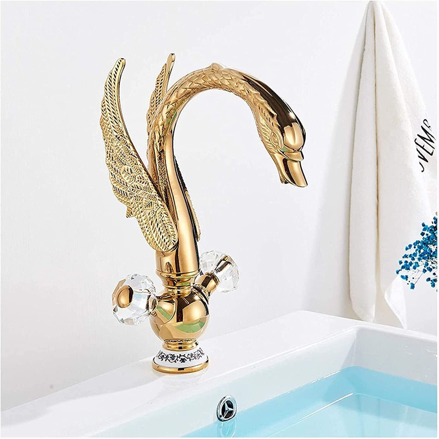 Golded Waterfall Swan Style Bathroom Sink Faucet Single Handle Vessel Mixer Tap