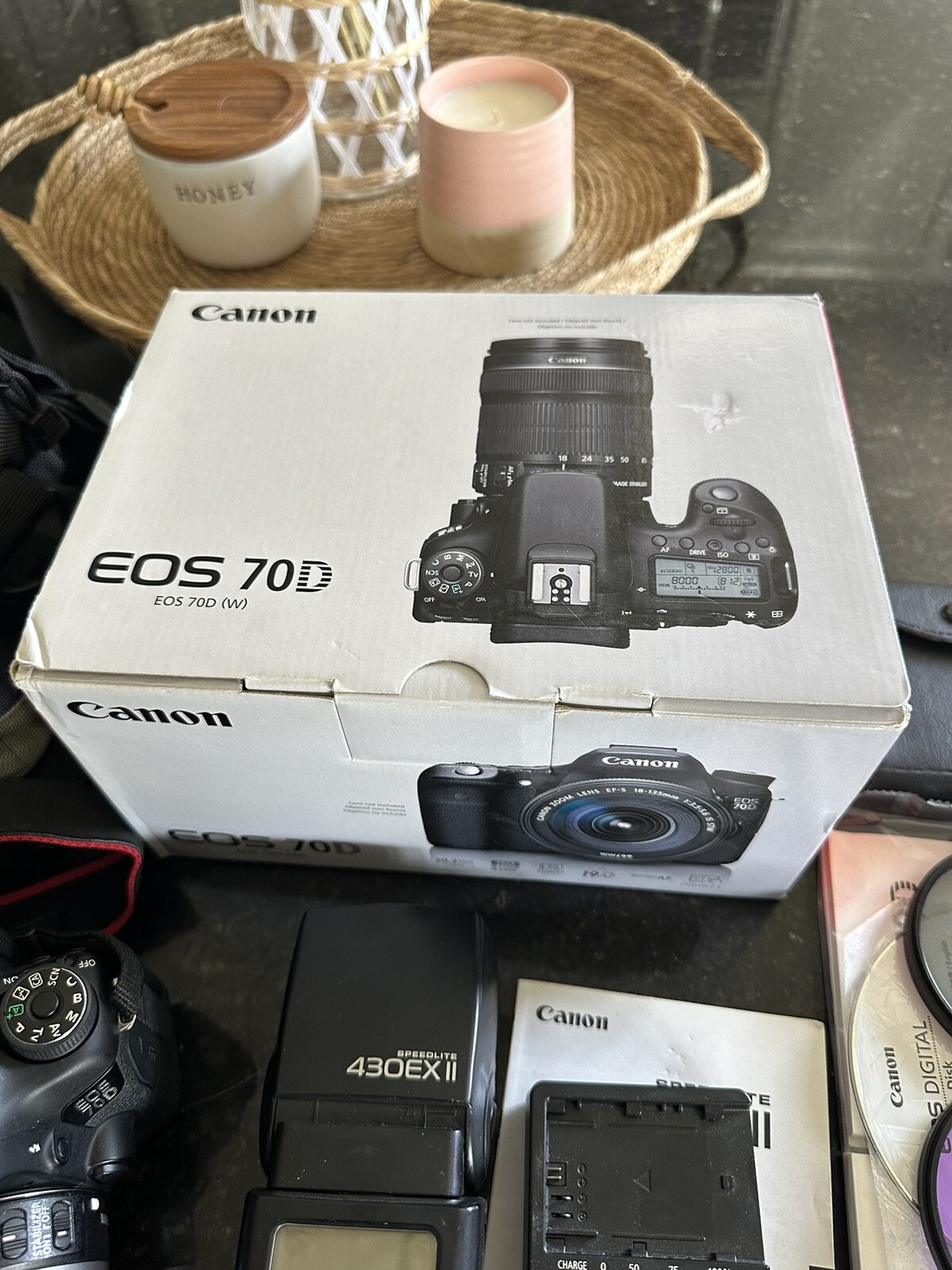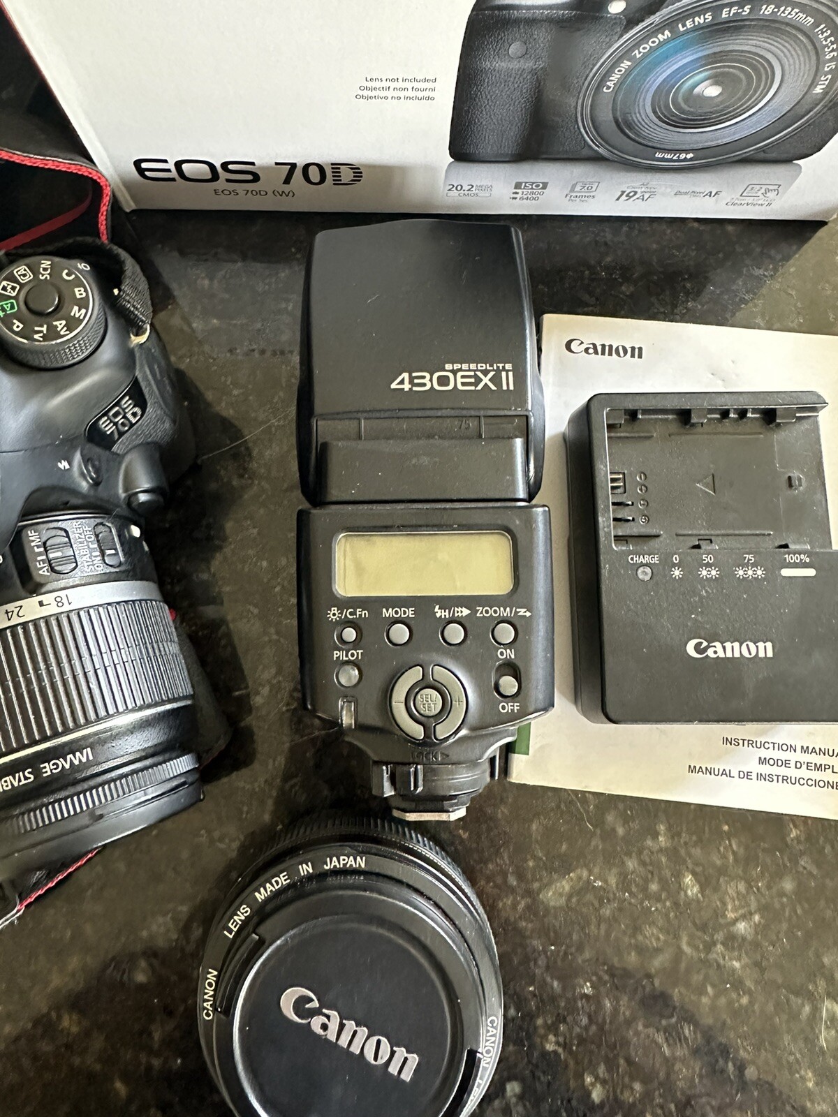 Canon EOS 70D 20.2MP Digital SLR Camera with Zoom EF-S 18-55mm Lens, Flash, Bag