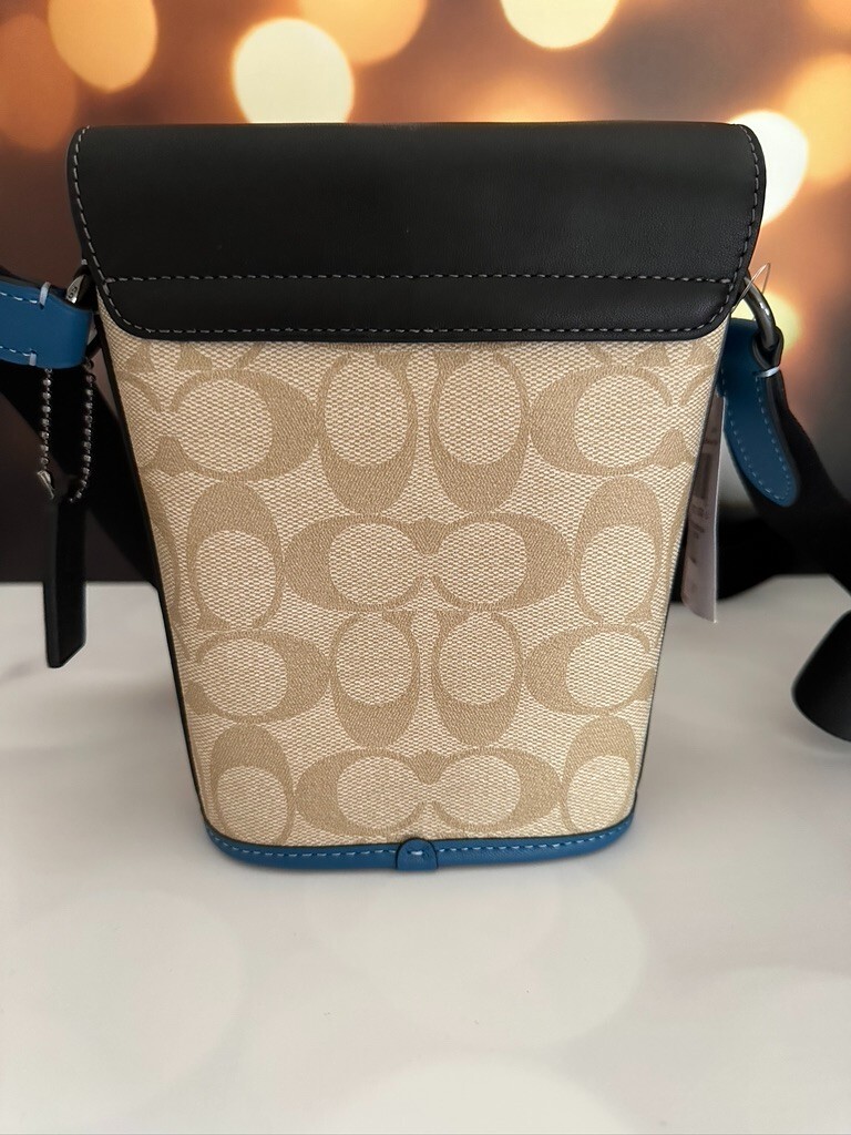 как выглядит NWT Coach men Track Small Flap Crossbody In Colorblock Signature Canvas CH071 фото