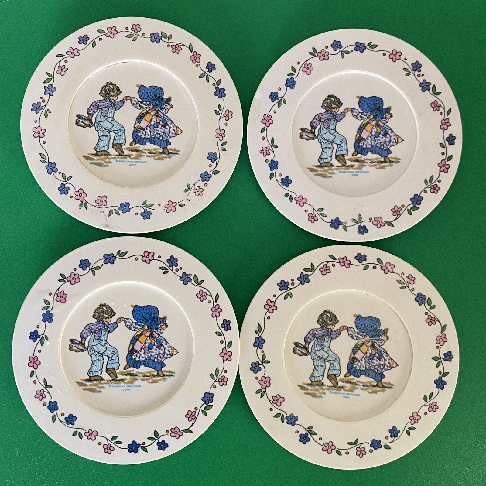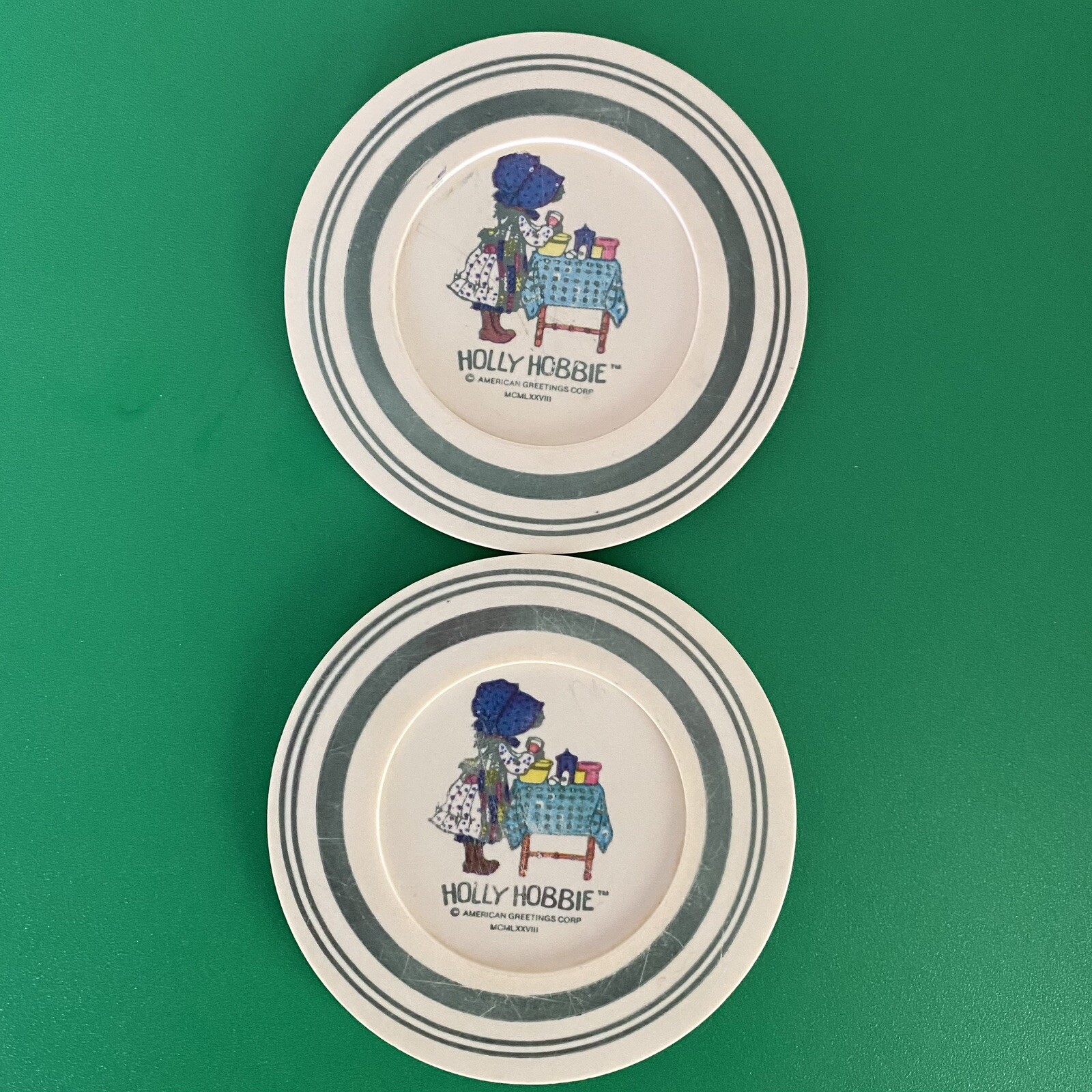 как выглядит Vintage Lot 15 Piece Chilton Holly Hobbie Plastic Dishes 3 Cups 12 Mixed Plates фото