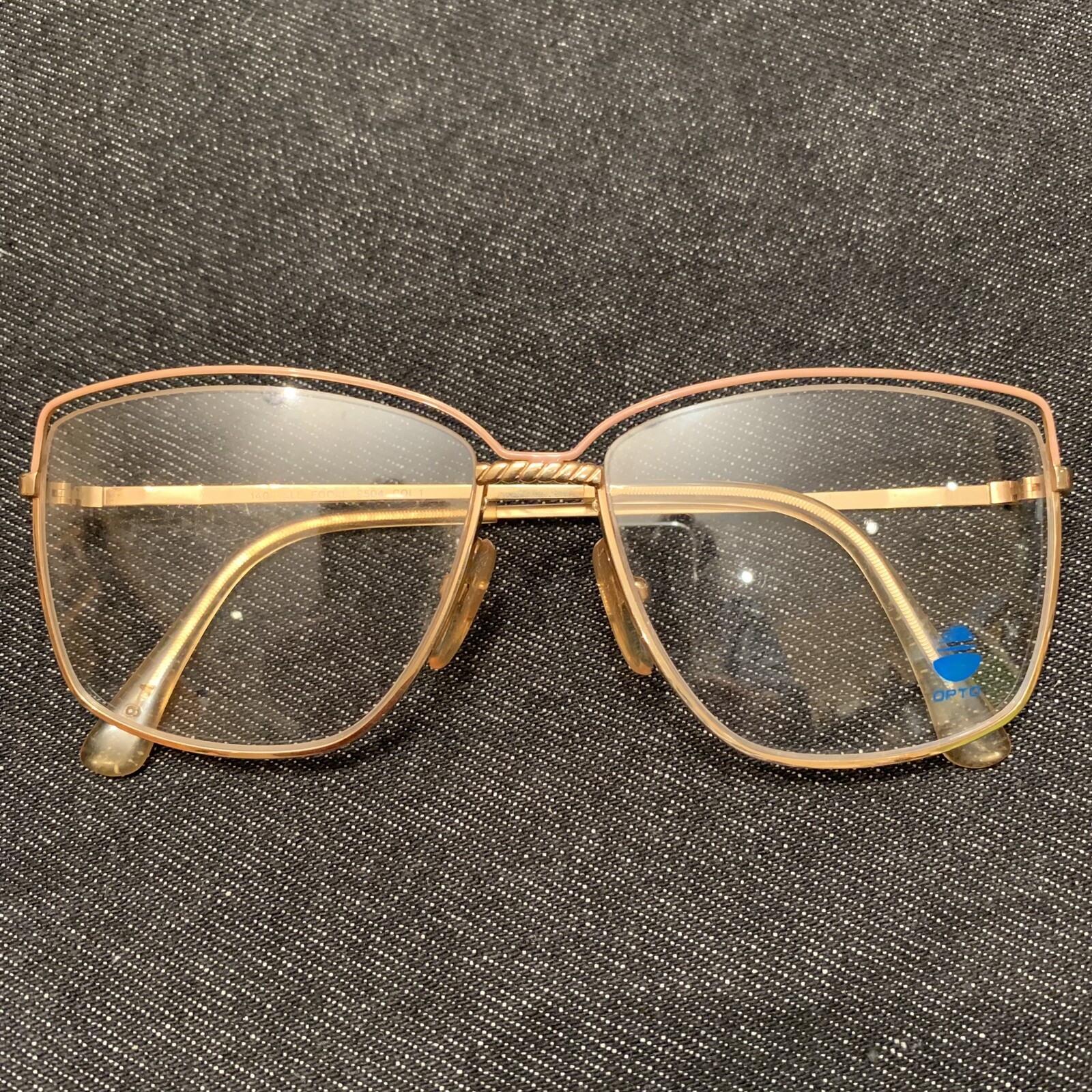New Old Stock True VTG 80s Pink Blush Gold Large BIG Eye Metal Frame Glasses 56