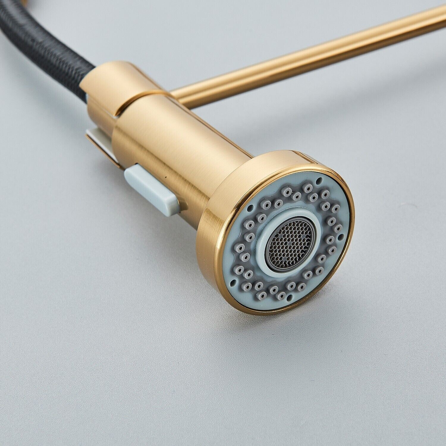 Kitchen Faucet Sink PullDown Sprayer Swivel Single Handle Mixer Tap Brushed Gold