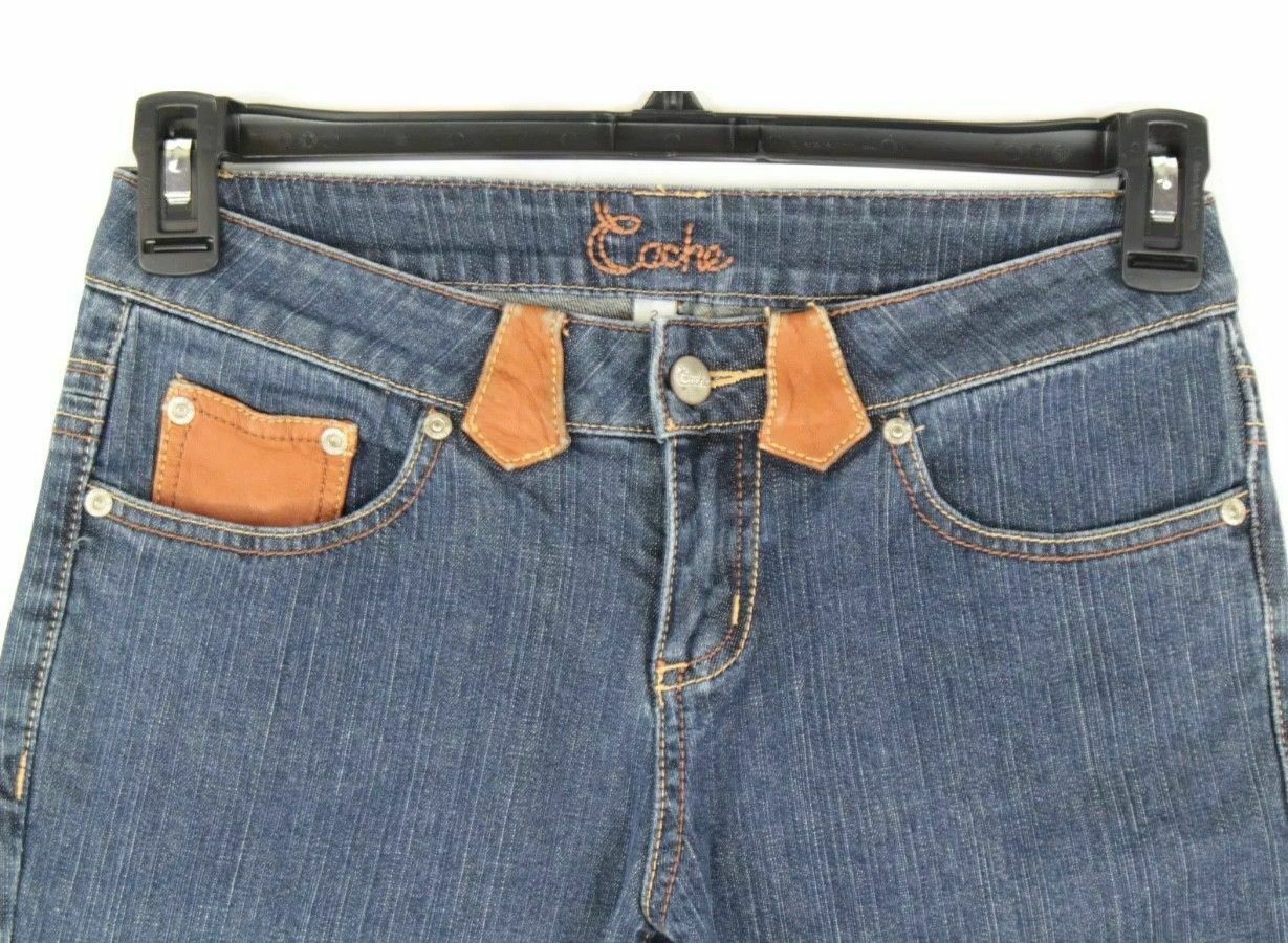 Cache Women's Jeans Stretch Denim Leather Loop Size 2