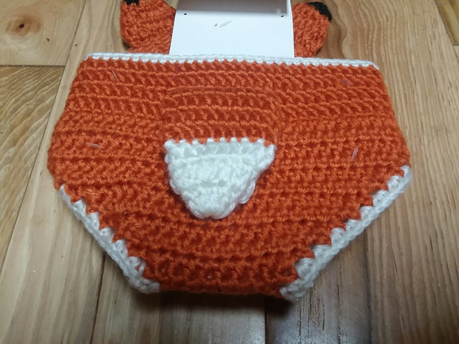 Baby Fox - Hand Crocheted Hat Diaper Cover Set - Infant Size: 0 - 9 Months New