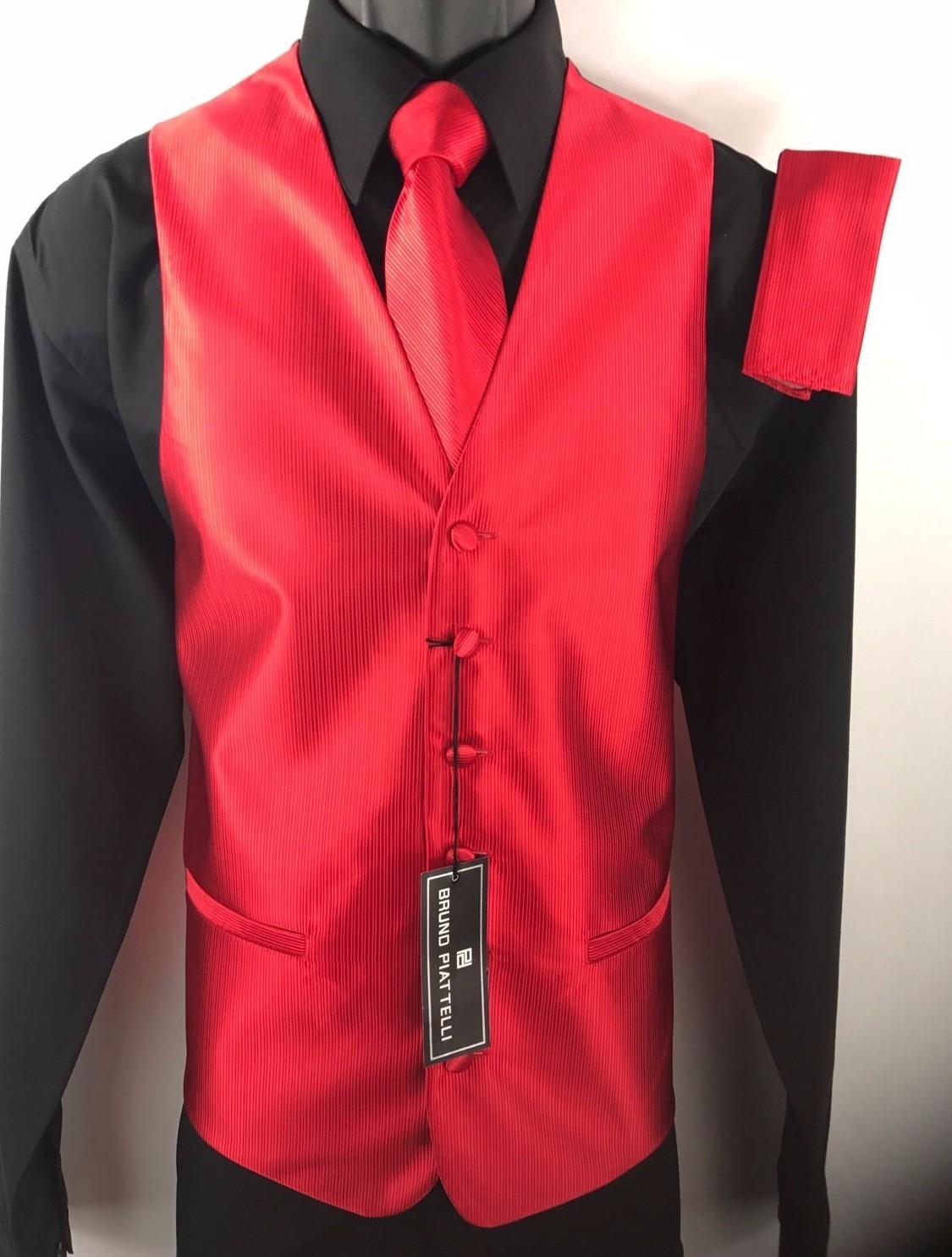 Bruno Piattelli Roma Men's Red Tuxedo Formal 4 Piece Vest Tie Bow Tie Hanky 2XL