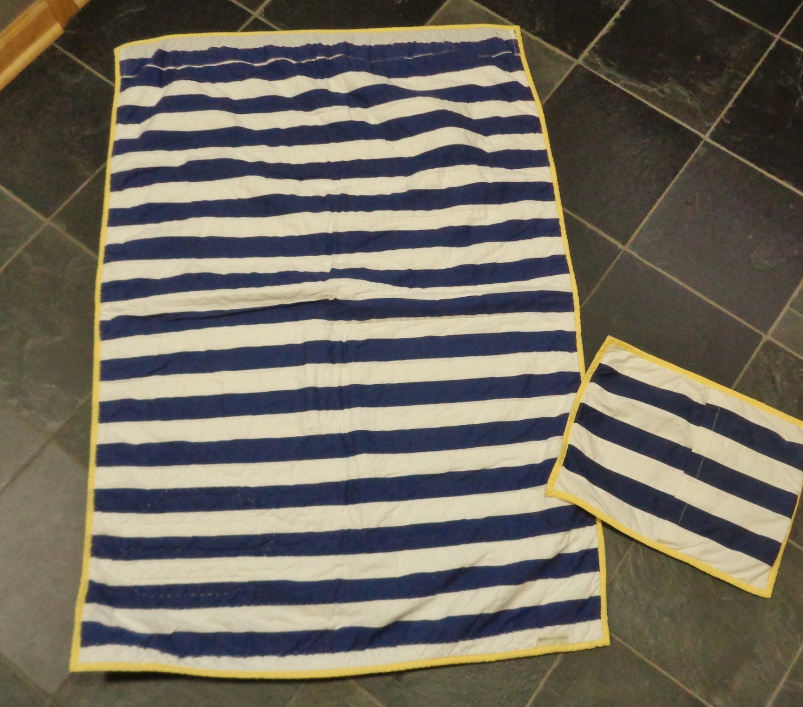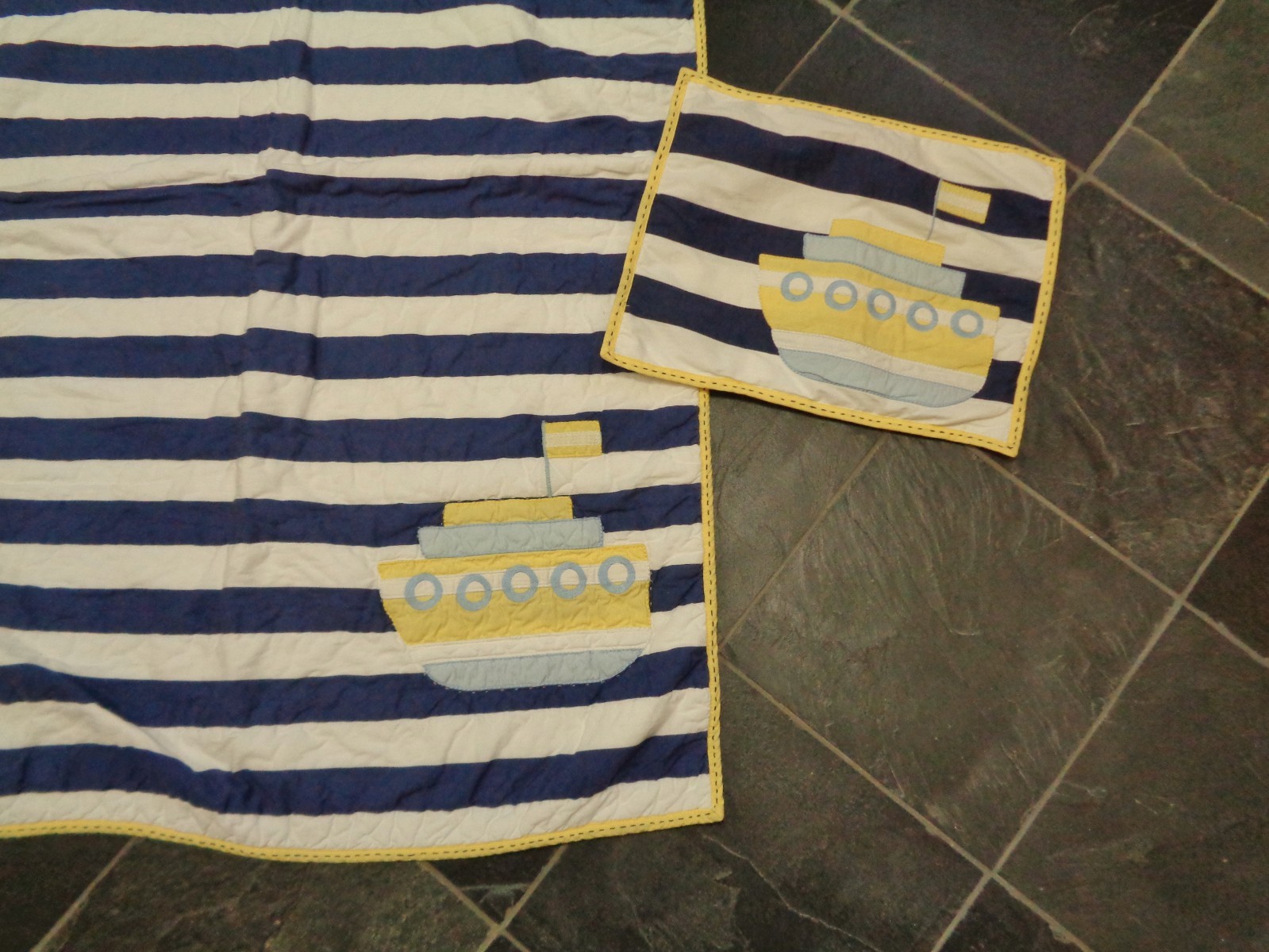 как выглядит Pottery Barn Kids Baby Toddler Quilt Sham Blue Striped BOAT SHIP Nautical фото