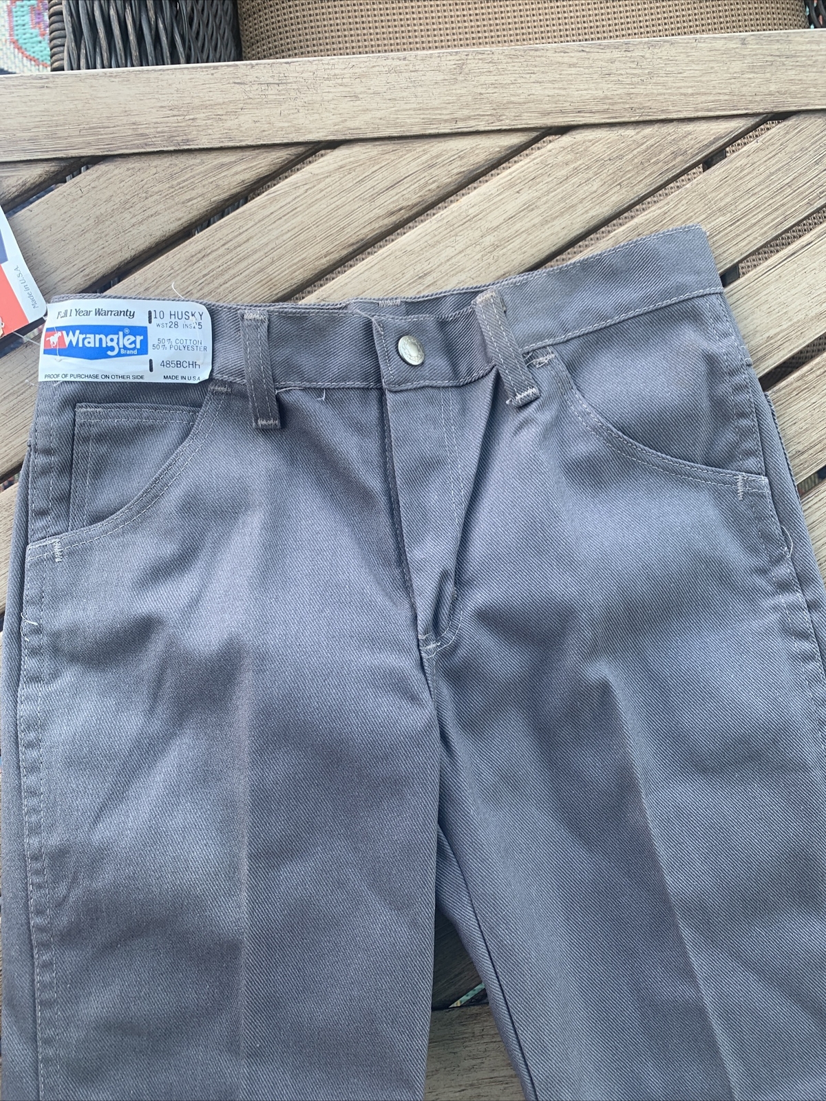как выглядит Vintage 80s Wrangler Straight Leg Boys 10 Husky W28 Western Pant Deadstock Gray фото