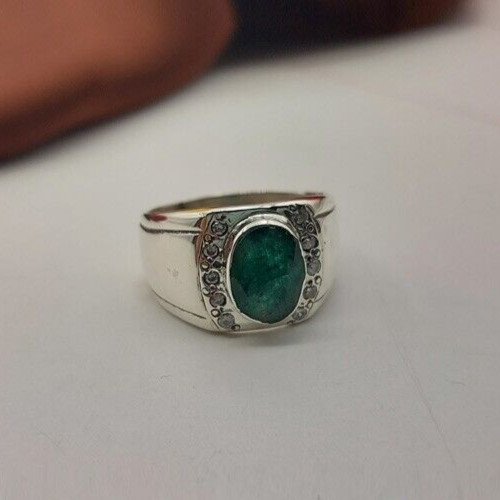 Natural Emerald Stone Real Oval Zamurd Stone Sterling Silver 925 Handmade Ring