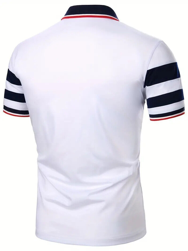 Polo Camiseta Blanco Azul Marino Cremallera Cuello Rojo Adornos Rayas Golf Moda