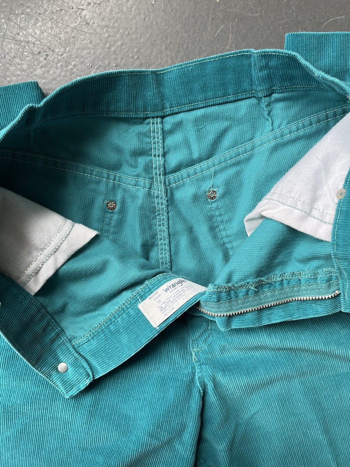 как выглядит Vintage 70s Wrangler Corduroy Flared Pants Teal Scoville Hippie Sz 28Wx32L фото
