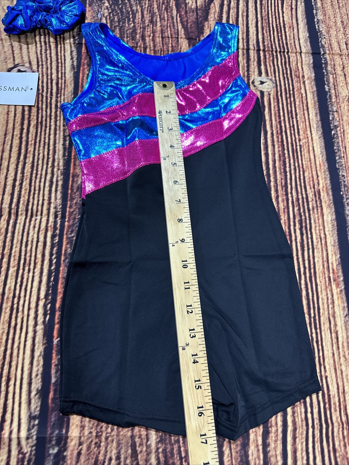 Weissman Children's Black/ Caribbean Blue MT12432 Classic Tank Biketard Size IC