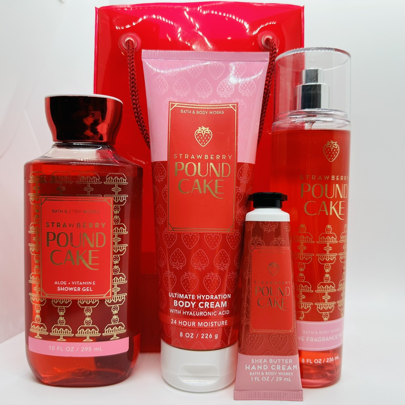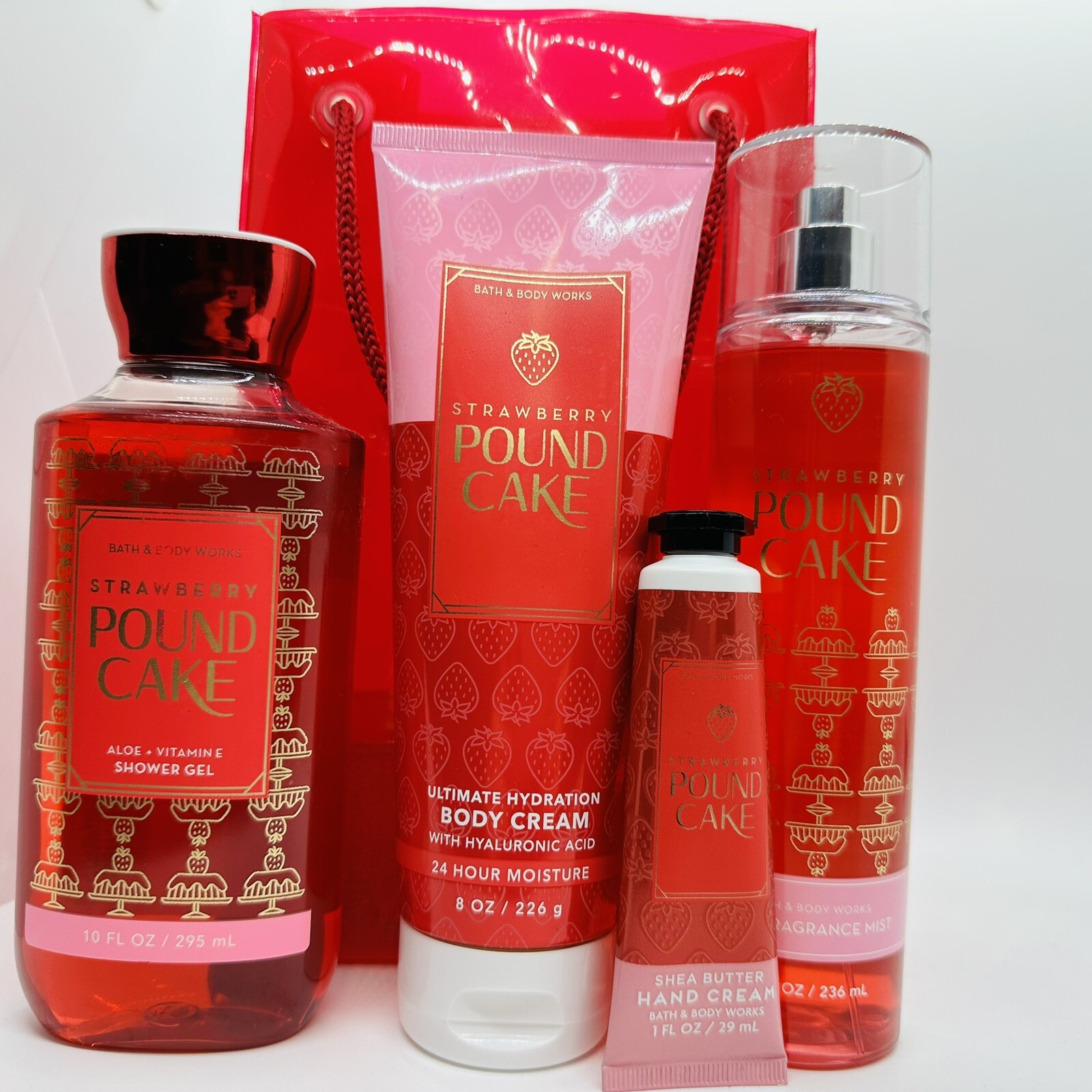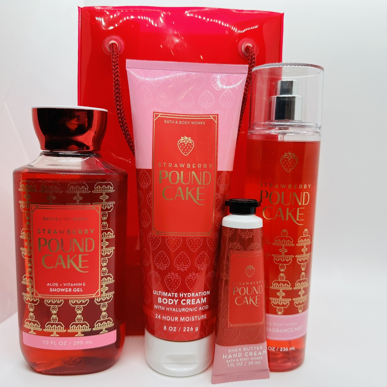 Bath Body Works STRAWBERRY POUND CAKE Fragrance Mist Cream Shower Gel Gift Bag