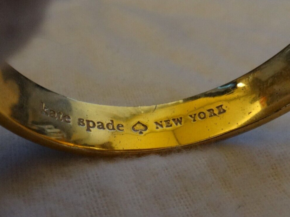 как выглядит Kate Spade New York Baby Blue Enamel Hinged Bangle Bracelet Gold Tone фото
