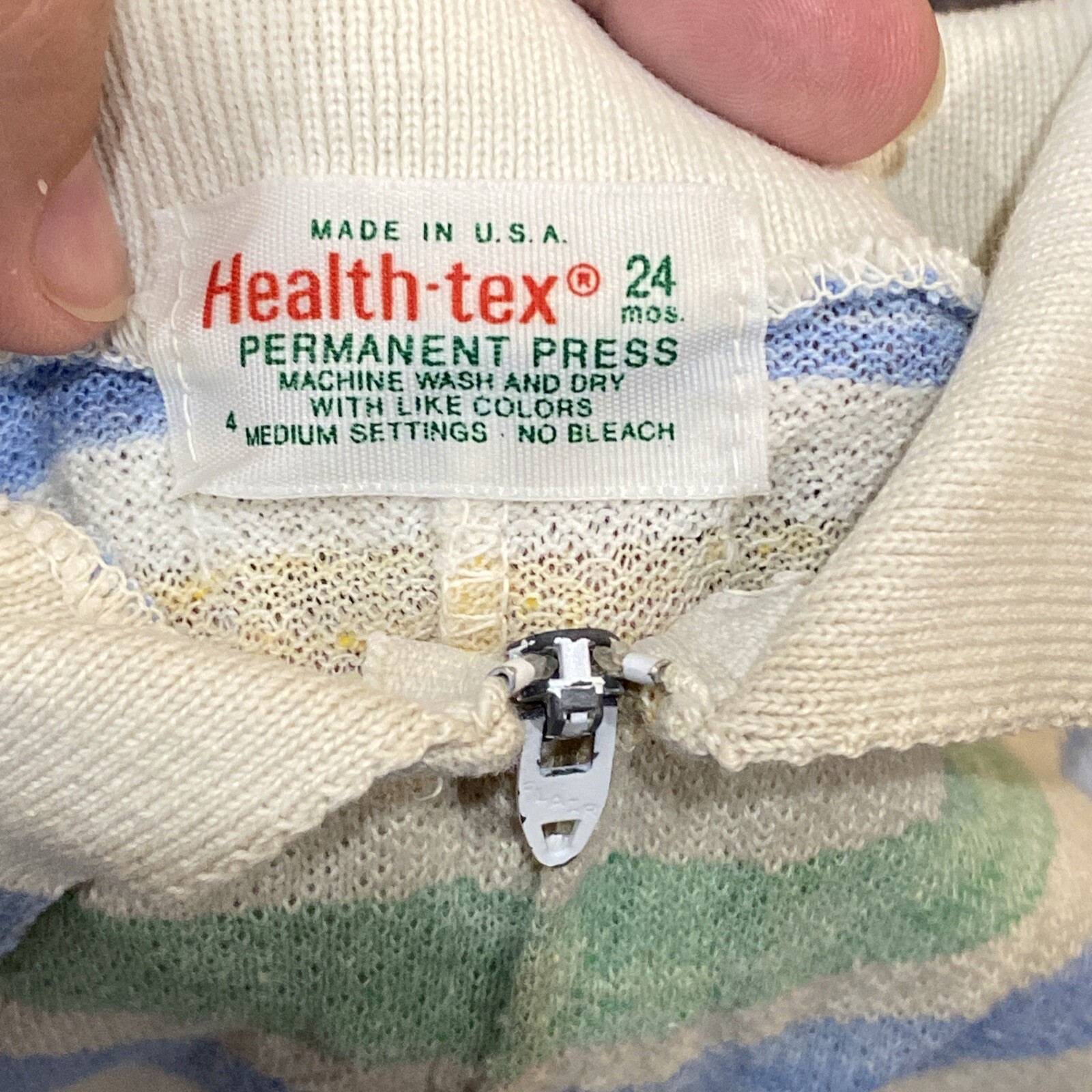 Vintage Baby Boy Health-Tex Blue Green Yellow Zipper Romper One Piece Striped
