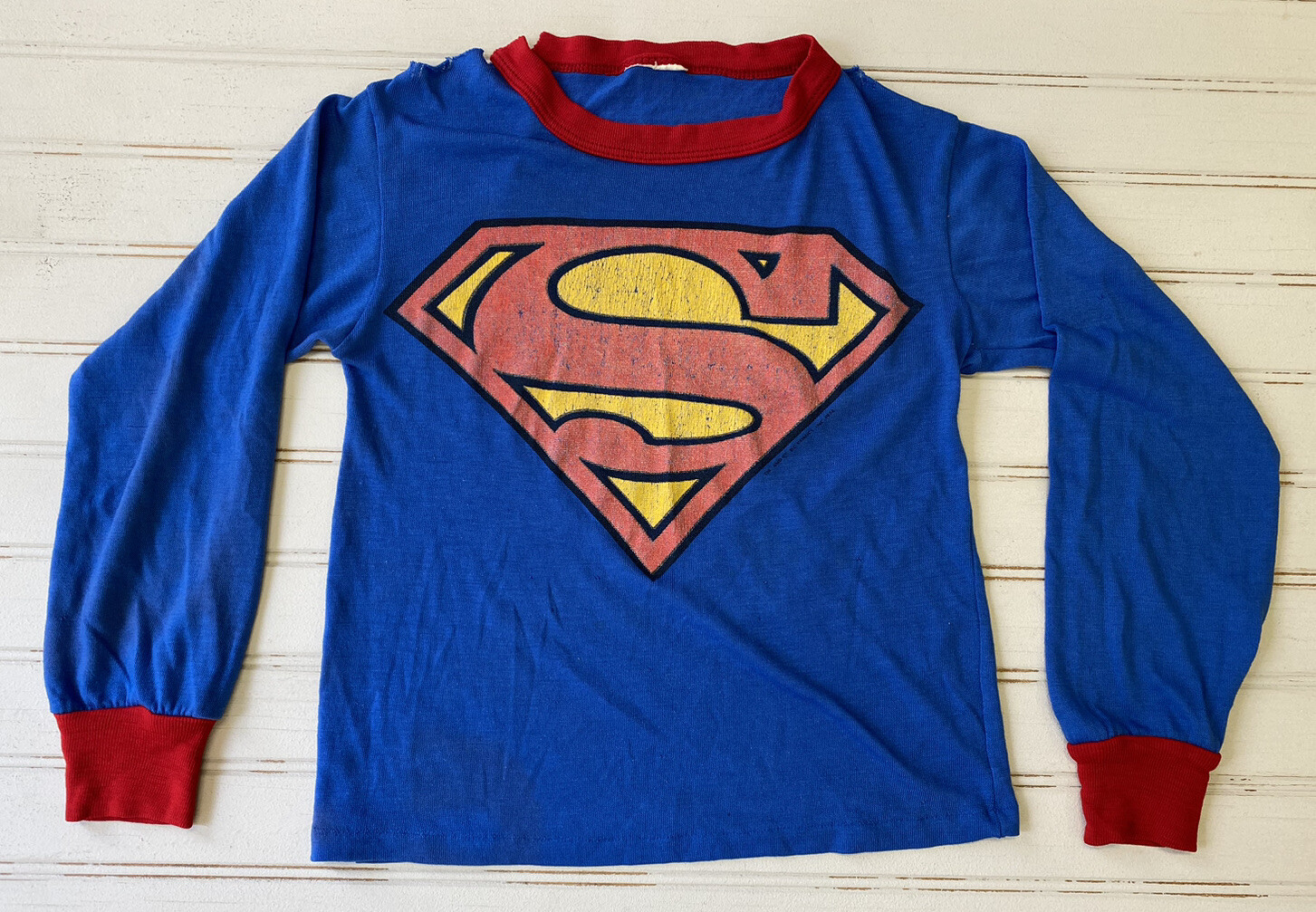 Vintage 1974 DC Superman Shirt Cape Costume Long Sleeve Pajamas Kids AS-IS READ