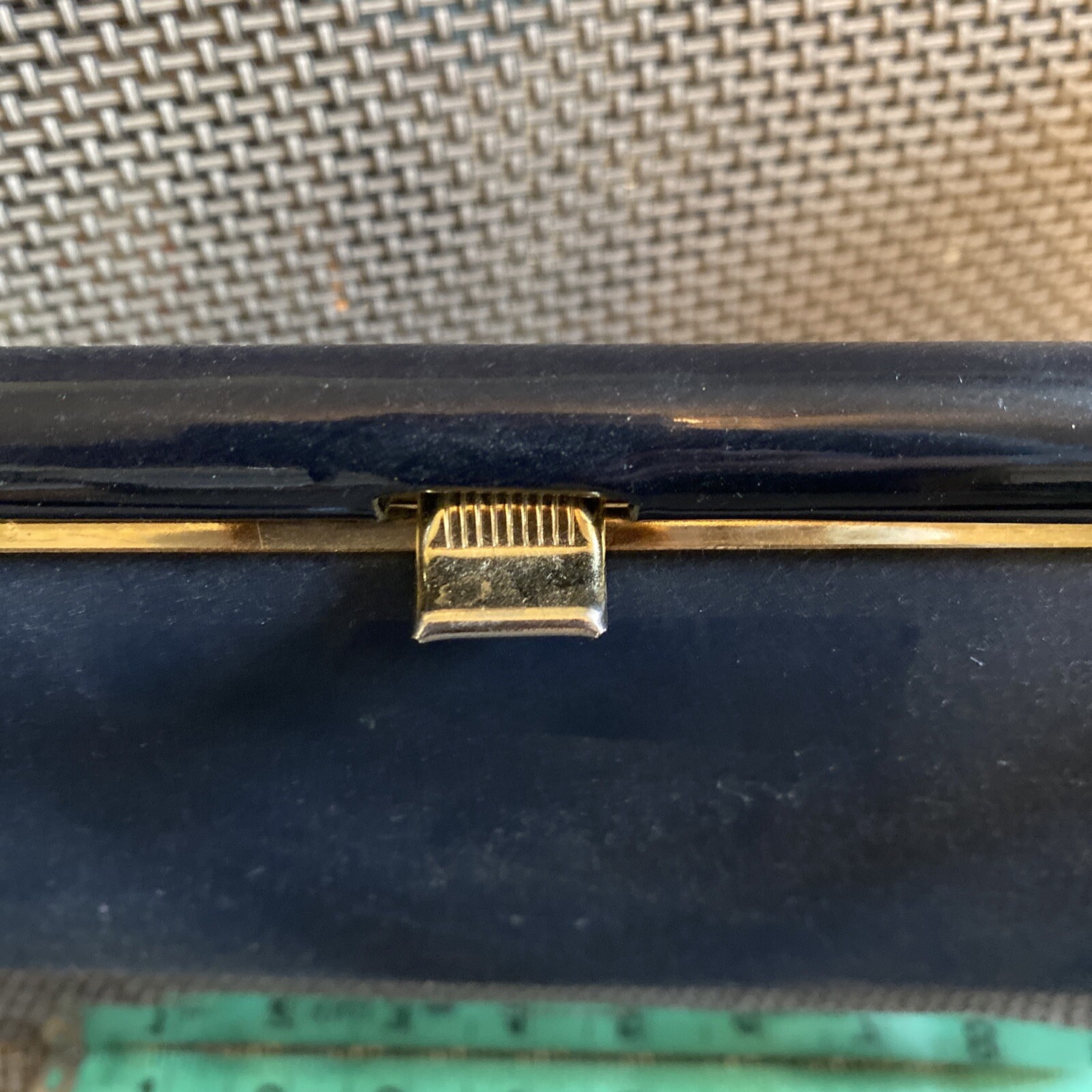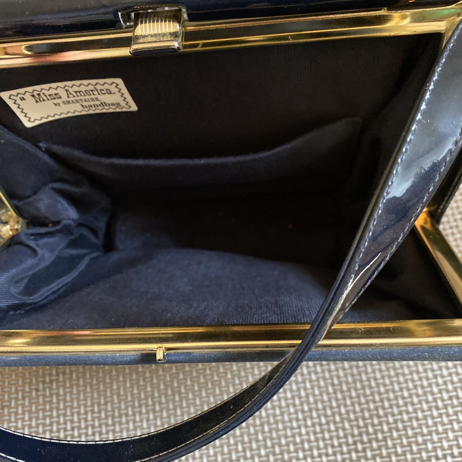 как выглядит A Miss America Smartaire Handbag Dark Navy Blue W Gold Metal Accent VTG фото