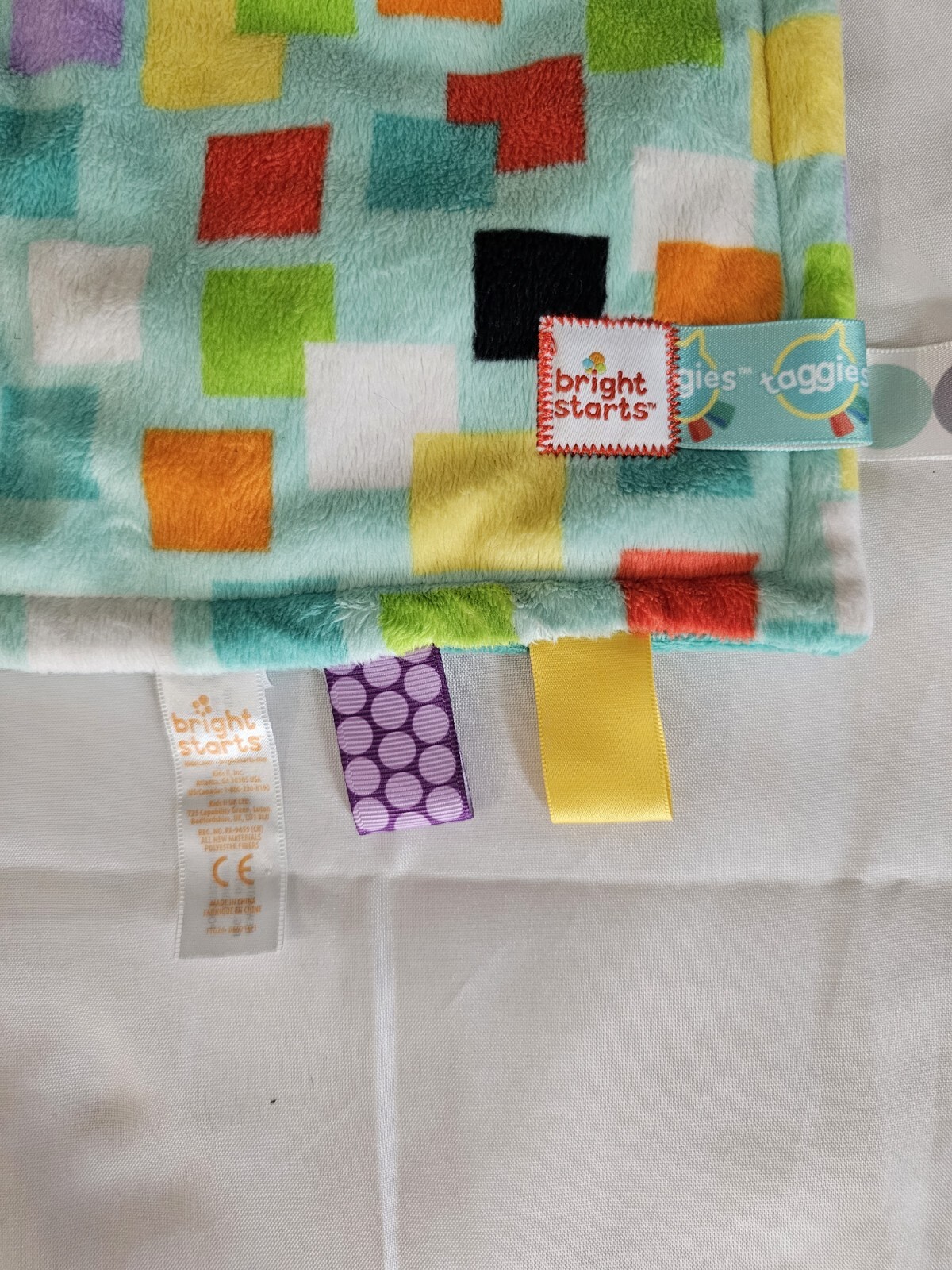 Bright Starts Taggies Baby Lovey Colorful Squares Tags Aqua Security Blanket