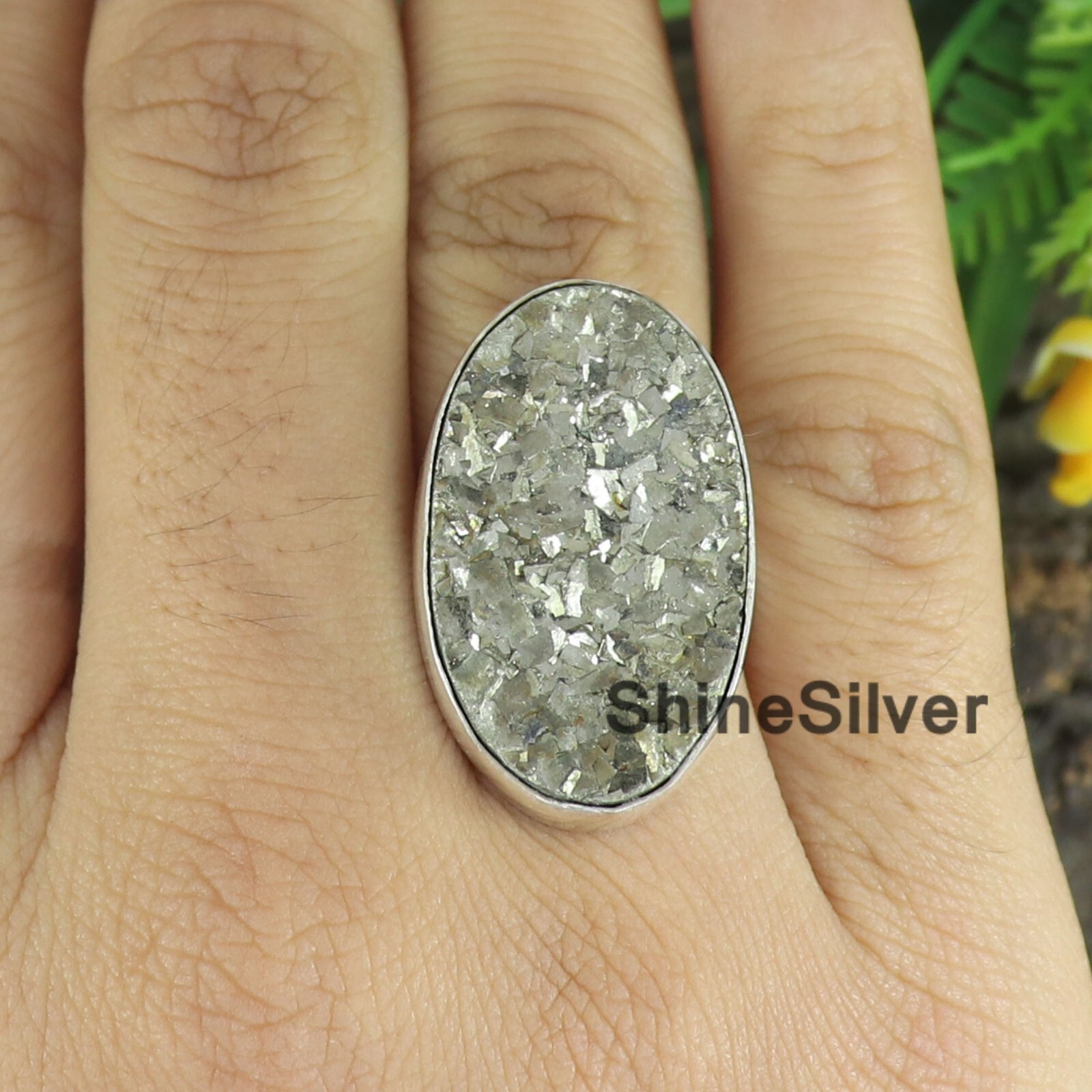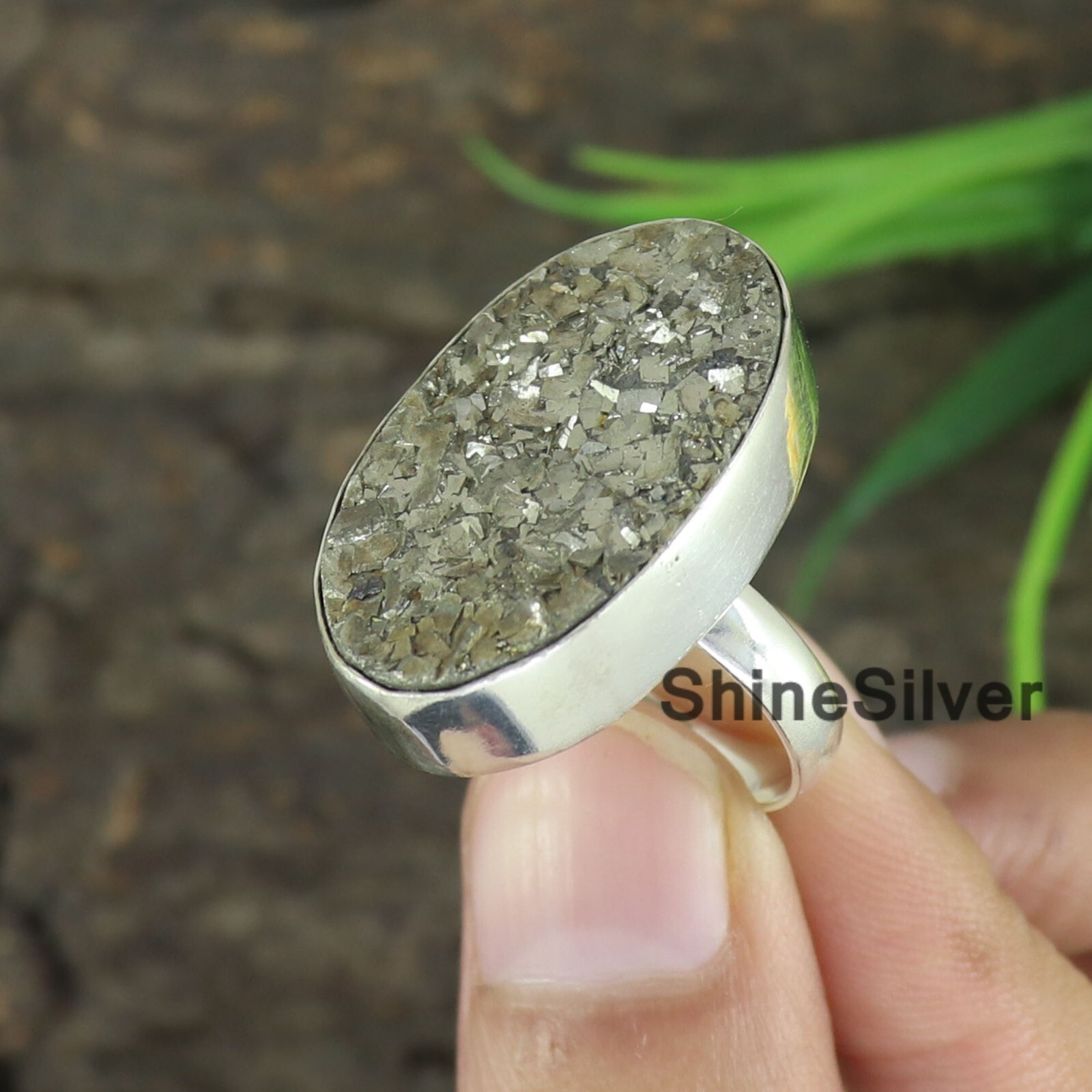 Pyrite Ring 925 Silver Boho Statement Handmade Designer Women Gift Ring