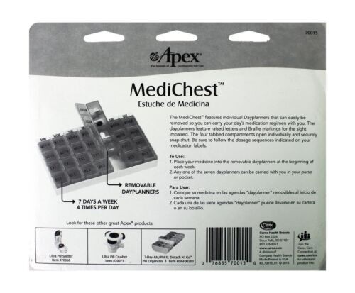 Apex Healthcare Medi Chest Pill Convenient Organizer Removable Dayplanner 1ct