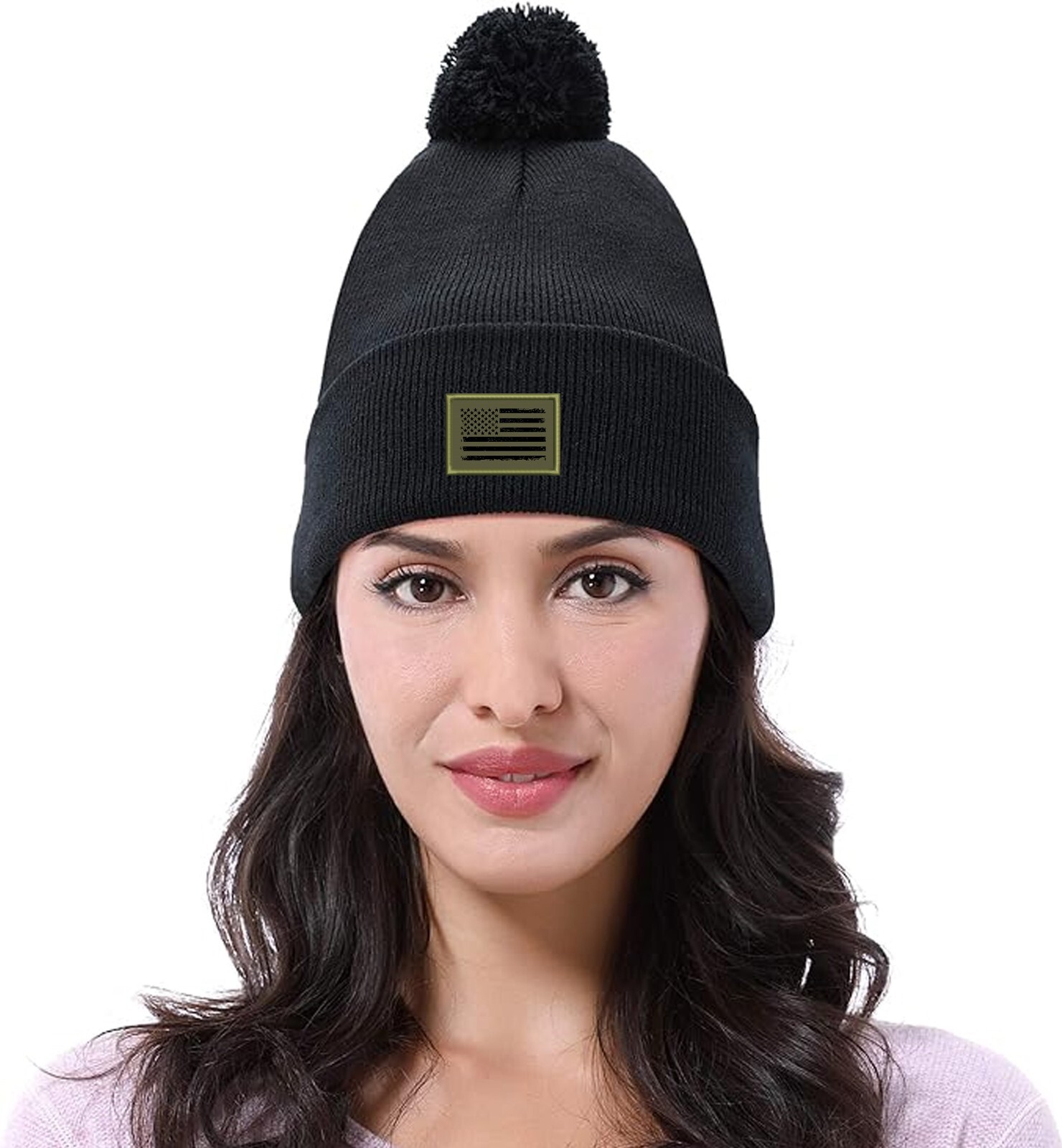 как выглядит American Flag Cuffed Pom Hat Olive Patch Black фото