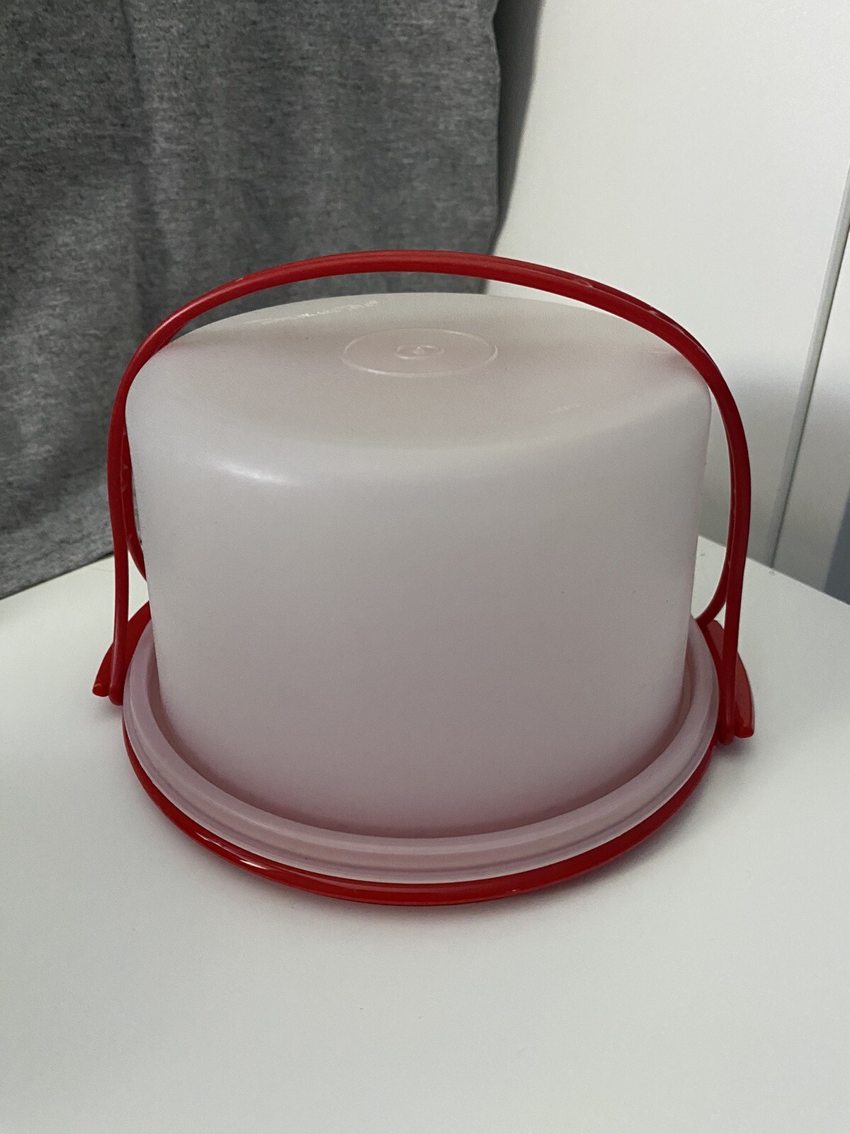 как выглядит Tupperware Toy 3 Piece Red Cake Holder Carrier 1498-5 Red Green 6 Plates 1502 фото
