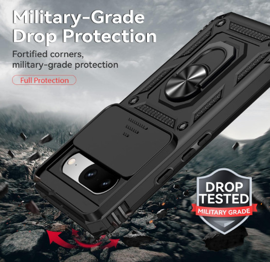 Google Pixel 8 Case Military-Grade Heavy Duty Cover with Metal Ring Stand