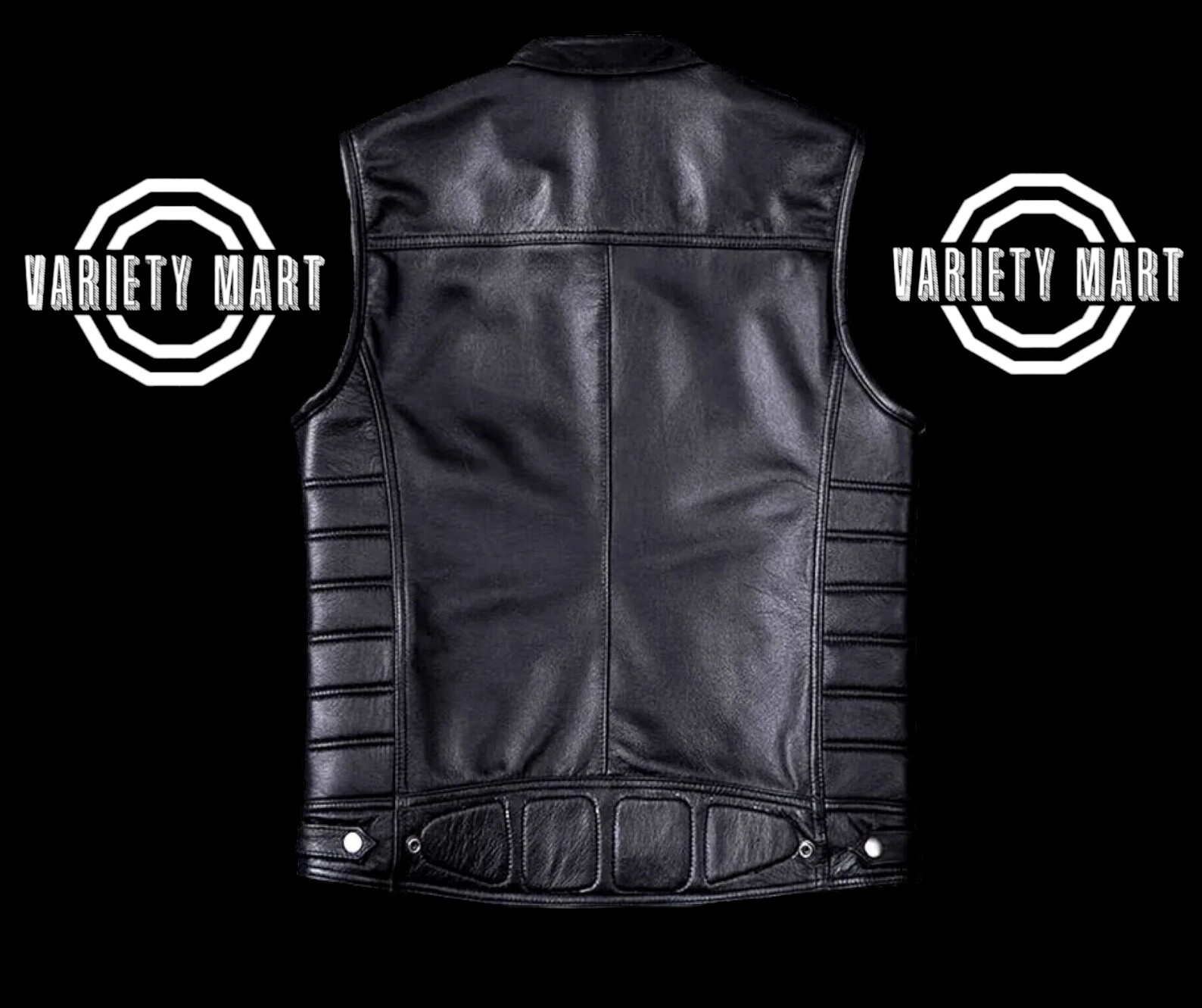 SWAT Style Black Leather Biker Vest for Men Padded Tactical Motorcycle Conceal
